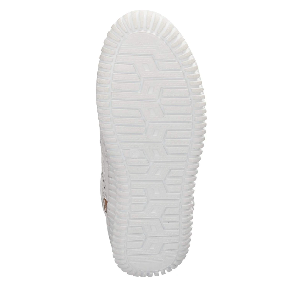 Sportlicher Damen-Halbschuh von Andrea Conti aus weißem Glattleder, dessen gelochtes Muster in Kombination mit atmungsaktivem Echtleder für ein angenehm trockenes Fußklima sorgt. Die klassische Schnürung lässt sich dank Elastikschnürung bequem handhaben und individuell anpassen. Ein runder Leisten, gepolsterter Einstig und das weich gepolsterte, herausnehmbare Fußbett bieten Komfort bei jedem Schritt. Die flexible, rutschhemmende Laufsohle gibt zuverlässigen Halt im Alltag, während rustikale Ziernähte dem cleanen Weiß subtile Struktur verleihen. Das Modell fällt normal aus und begleitet zuverlässig durch Büro, Freizeit und Reise. Modetipp: Den frischen Ton mit Cropped-Jeans, fein gestreifter Hemdbluse und leichtem Trench abrunden; Accessoires in Naturleder setzen ruhige Akzente.