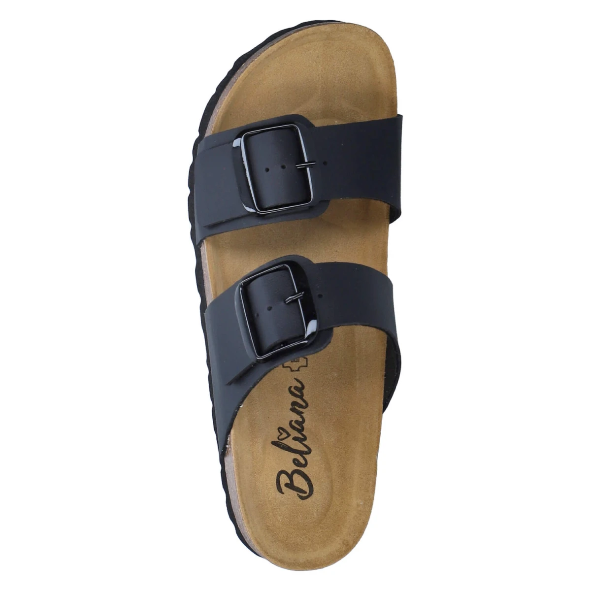 Die Pantoletten von Beliana setzen auf klare Linien und eine edle Ausstrahlung: Schwarzes Kunstleder in eleganter Lackoptik verleiht dem Design Glanz, die runde Schuhspitze und die fein justierbare Schnalle sorgen für eine feminine, ausgewogene Silhouette. Innen verwöhnt eine weiche Decksohle aus Leder, während das gepolsterte, vorgeformte Korkfußbett mit Lederbezug den Fuß stabilisiert und sanft stützt. Die flexible Profilsohle bietet zuverlässigen Grip, als relaxtes Leichtgewicht erhöht das Modell den Tragekomfort spürbar. Der Schnitt fällt normal aus und passt sich dank der Riemen bequem an. Ideal für Büro, Stadtbummel und Sommerabende, wenn Schlichtheit und Komfort gefragt sind. Modetipp: Zu einem schwarzen Satinkleid und goldfarbenem Schmuck entsteht ein moderner Monochrom-Look mit subtiler Luxusnote.