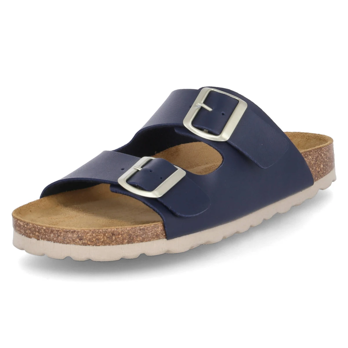 Die Pantoletten von Beliana in ruhigem Blau verbinden zeitlose Ästhetik mit spürbarem Komfort. Das pflegeleichte Kunstleder des Obermaterials zeigt eine klare, klassische Linienführung, während die offene Schuhspitze sommerliche Leichtigkeit versprüht. Für einen sicheren Sitz sorgt die verstellbare Schnalle, die sich präzise an den Fuß anpassen lässt. Innen verwöhnt eine hautfreundliche Lederdecksohle, darunter stützt ein vorgeformtes, weiches Kork-Tieffußbett mit Lederbezug den natürlichen Schritt. Die leichte EVA-Laufsohle mit dezentem Profil federt sanft ab und bietet zuverlässigen Halt auf verschiedenem Untergrund. So entsteht ein zuverlässiger Begleiter für Alltag, Freizeit und Reise, der zu vielfältigen Looks passt. Modetipp: Zu weißer Denim, gestreiftem Shirt und Korbtasche entsteht ein frischer Marinelook.