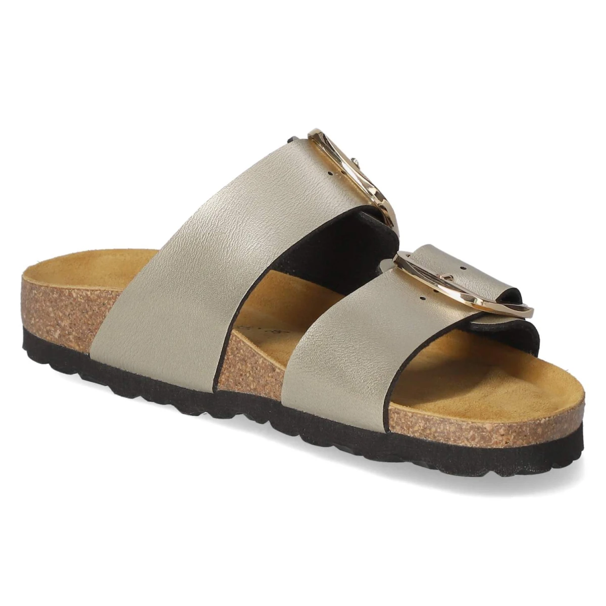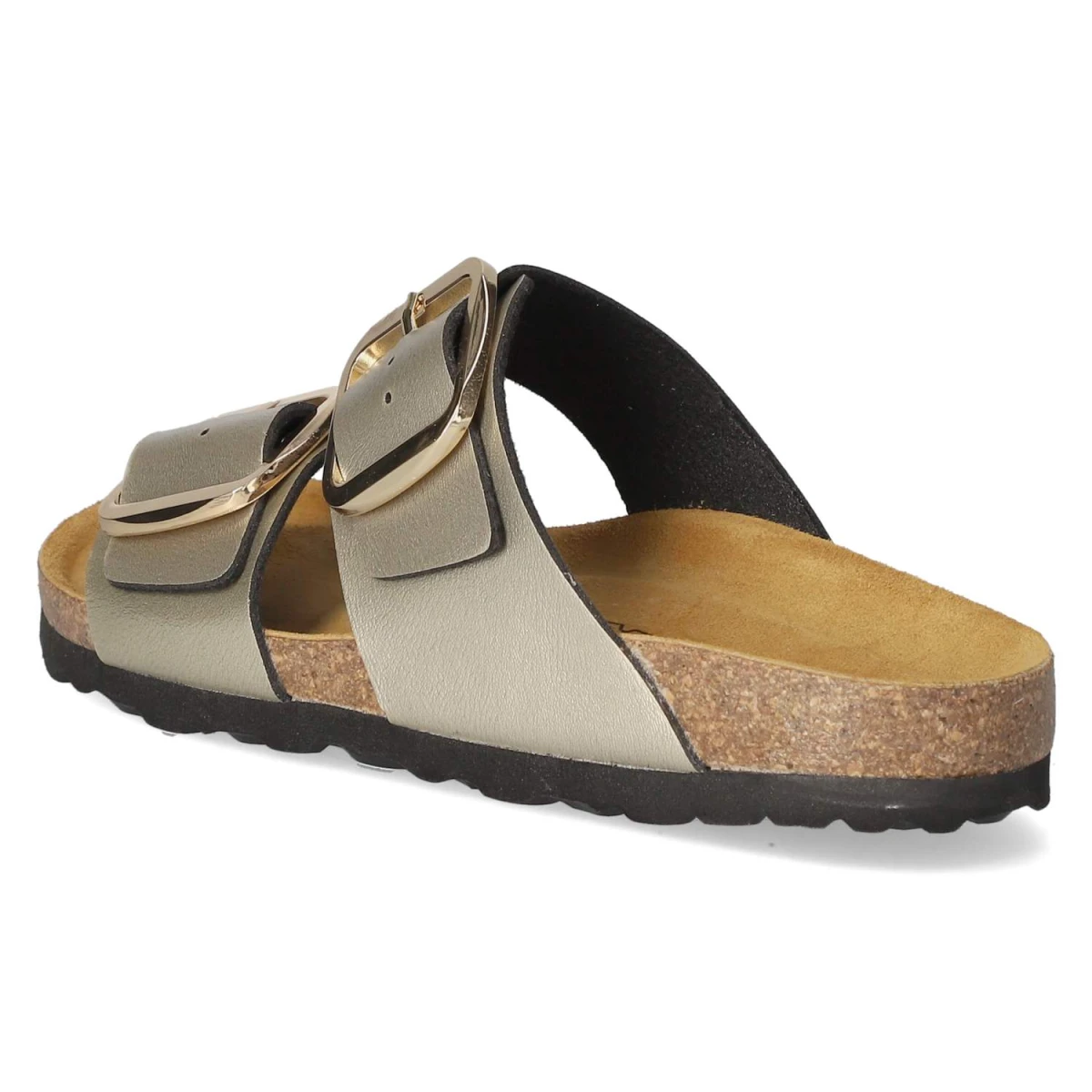 Die Pantoletten von Beliana vereinen glamourösen Look und durchdachten Komfort. Das goldfarben schimmernde Obermaterial aus Kunstleder bringt einen eleganten Akzent in sommerliche Outfits, während die offene Schuhspitze für luftiges Tragegefühl sorgt. Die vorgeformte Decksohle geht in ein gepolstertes Lederfußbett über, das die Fußkontur sanft unterstützt und entspanntes Gehen über den Tag ermöglicht. Verstellbare, sichere Schnallen sorgen für passgenauen Halt, die flexible Laufsohle federt Schritte angenehm ab. Der Größenhinweis fällt normal aus, wodurch die gewohnte Größe die richtige Wahl ist. Diese Damen-Pantoletten sind ideal für Freizeit und Anlass, wenn dezenter Glanz gefragt ist. Modetipp: Zur Culotte in Naturtönen und einer feinen Satinbluse entsteht ein moderner City-Look, der mit goldenen Accessoires harmonisch abgerundet wird.