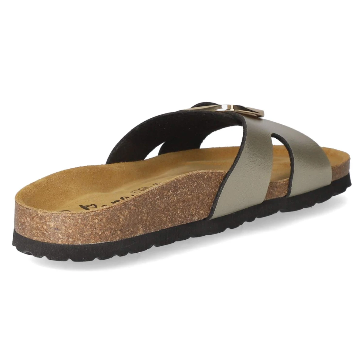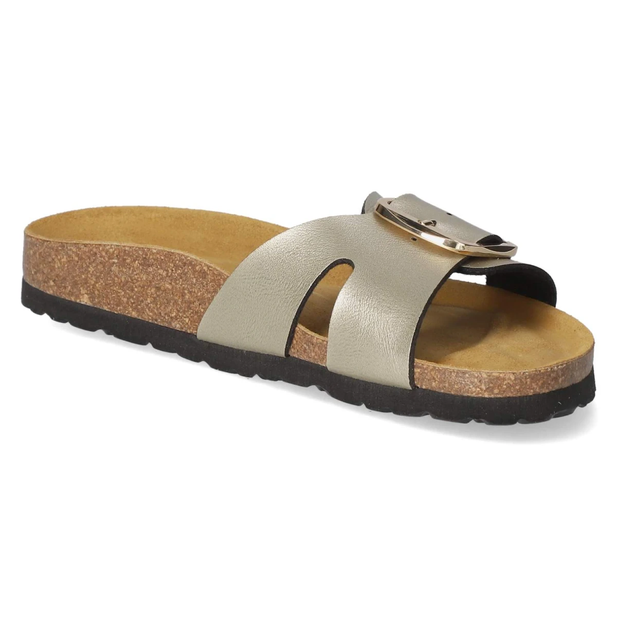 Beliana präsentiert Pantoletten, die glamourösen Glanz mit Komfort verbinden. Das goldfarbene Synthetik-Obermaterial besitzt eine elegant schimmernde Oberfläche, die jedem Look sofort eine edle Note verleiht. Ein unkomplizierter Einstieg und die verstellbare Schnalle sorgen für sicheren Halt, während das vorgeformte, gepolsterte Lederfußbett den Fuß angenehm umschließt. Die flexible Laufsohle begleitet souverän durch lange Tage und Abende. Mit offener Schuhspitze und größengetreuem Sitz wird ein femininer Auftritt leicht gemacht - von sommerlichen Anlässen bis zu City-Events. Die lederne Decksohle trägt sich weich und unterstützt ein wertiges Fußgefühl. Modetipp: Goldfarbene Pantoletten harmonieren besonders mit Creme- und Sandtönen; eine weite Culotte oder ein fließender Midirock und dezenter Schmuck lassen den Schimmer modern wirken.