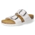 Die Pantoletten von Beliana vereinen moderne Optik und Komfort in einem zeitlosen Weiß. Zwei breite Riemen aus pflegeleichtem Kunstleder werden von großen, markanten Schnallen gehalten und setzen einen klaren Akzent. Die hautfreundliche Lederdecksohle liegt angenehm am Fuß, während das vorgeformte, gepolsterte Tieffußbett die natürliche Fußstellung unterstützt. Eine flexible Sohle sorgt für geschmeidiges Abrollen im Alltag, der offene Zehenbereich bringt sommerliche Leichtigkeit. Der Schnitt fällt normal aus und richtet sich an Damen, die unkomplizierte Begleiter für Freizeit und Reise schätzen. Das Material ist unempfindlich und lässt sich leicht reinigen, sodass der frische Look lange erhalten bleibt. Modetipp: In Kombination mit weit geschnittener Leinenhose und einem cleanen Tanktop entsteht ein lässig-eleganter Sommerlook; dazu eine filigrane Kette oder eine Korbtasche für ein harmonisches Finish.