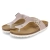 Der Zehentrenner von Beliana verbindet sommerliche Leichtigkeit mit einem kunstvollen Auftritt. Das Obermaterial aus pflegeleichtem Kunstleder zeigt einen bunten, abstrakten Textilprint, der durch feine goldfarbene Elemente edel akzentuiert wird. Die offene Schuhspitze betont den luftigen Charakter, während die verstellbare Schnalle sicheren Halt bietet. Für Komfort sorgt ein weich gepolstertes Fußbett in Kombination mit einer Decksohle aus Leder, die auch an langen Tagen ein angenehmes Tragegefühl ermöglicht. Als relaxtes Leichtgewicht begleitet das Modell zuverlässig durch Stadtbummel, Strandpromenade und Gartenparty. Der Schnitt fällt normal aus und erleichtert die Größenauswahl. Modetipp: Der lebhafte Print wirkt besonders modern zu monochromen Looks in Weiß, Creme oder Schwarz und erhält mit dezentem Goldschmuck eine stilvolle Ergänzung.