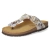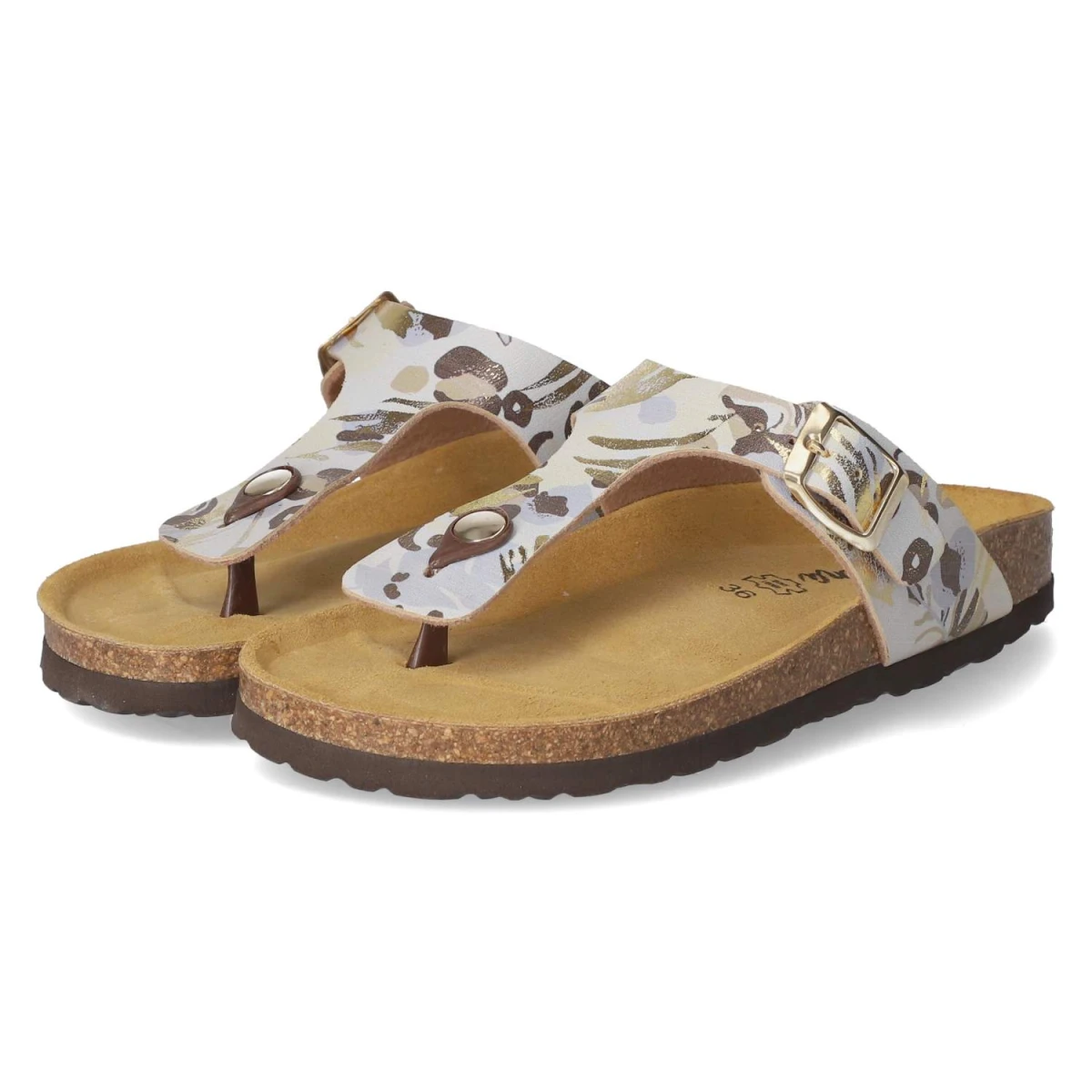 Der gemusterte Zehentrenner von Beliana verbindet sommerliche Leichtigkeit mit komfortabler Ausstattung. Die abstrakte, mehrfarbige Musterung setzt einen lebhaften Akzent, während die goldene Schnalle einen eleganten Glanzpunkt bildet. Das Obermaterial aus Kunstleder überzeugt mit pflegeleichter Oberfläche, die sich unkompliziert reinigen lässt. Für langanhaltenden Komfort sorgt die vorgeformte, gepolsterte Lederdecksohle, die gemeinsam mit der flexiblen Laufsohle ein angenehm weiches Auftreten ermöglicht. Der offene Schnitt und der unkomplizierte Einstieg unterstreichen die entspannte Note, der verstellbare Verschluss bietet dabei zuverlässigen Halt. Die Passform fällt normal aus und eignet sich für den täglichen Einsatz in der warmen Saison. Modetipp: Zur Betonung des Farbspiels harmonieren luftige Leinenhosen und ein unifarbenes Top; goldfarbener Schmuck greift die Schnalle stilvoll auf.
