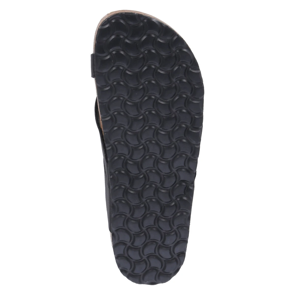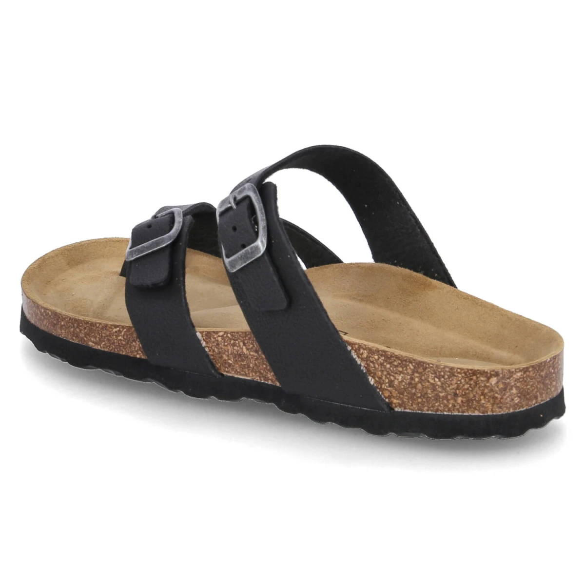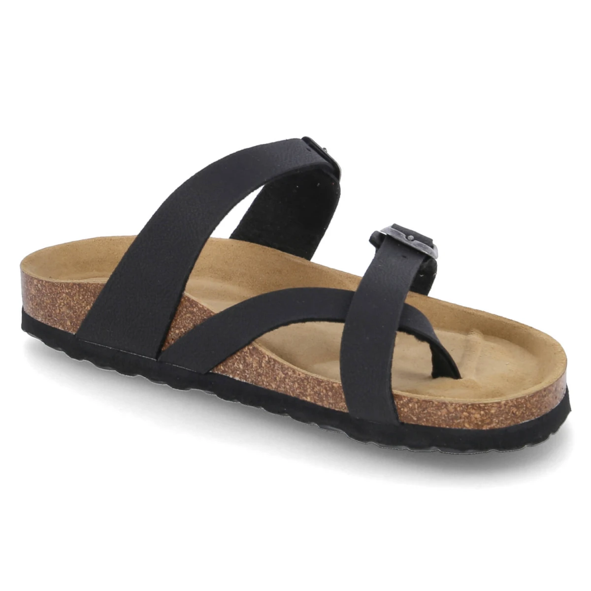 Dieser Zehentrenner von Beliana verbindet moderne Optik mit entspanntem Komfort. Das schwarze Obermaterial aus pflegeleichtem Kunstleder setzt auf klare Linien, während die fein gearbeitete Schnalle Halt und eine individuelle Passform ermöglicht. Der offene Zehenbereich wirkt leicht und sommerlich. Unter dem Fuß sorgt ein vorgeformtes, weiches Kork‑Tieffußbett mit Lederbezug für angenehme Dämpfung und natürliche Unterstützung des Fußgewölbes. Die EVA‑Laufsohle mit leichtem Profil gibt zuverlässigen Grip auf Stadtpflaster und Promenade. Vielseitig kombinierbar von Denim bis Maxikleid, wird das schlichte Design schnell zum täglichen Favoriten. Modetipp: Für einen edlen Monochrom‑Look zu schwarzen Leinen-Shorts und einer locker fallenden Bluse tragen; feiner Goldschmuck und ein Korbshopper runden den Auftritt ab.