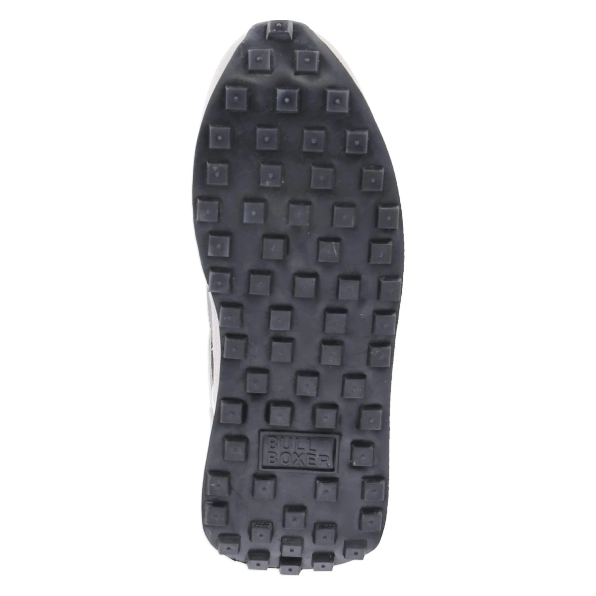 Der Low Sneaker von Bullboxer verbindet urbanen Stil mit spürbarem Komfort. Ein moderner Material-Mix aus Synthetik, Leder und Textil setzt auf dem weißen Grund subtile braune und schwarze Akzente, die dem Design Tiefe geben. Die runde Schuhspitze und der Schnürverschluss sorgen für eine zeitlose Silhouette, während verstärkter Zehen- und Fersenbereich die Alltagstauglichkeit erhöhen. Ein weich gepolsterter Einstieg und das komfortable, herausnehmbare Fußbett liefern den gewünschten Wohlfühlfaktor; bei Bedarf lassen sich individuelle Einlagen mühelos einsetzen. Die flexible, rutschhemmende und leicht abgerundete Laufsohle unterstützt ein natürliches Abrollen - ideal für lange Tage in der City. Dank normaler Passform trifft die Größenwahl auf Anhieb. Modetipp: Zu Slim-Jeans, weißem Shirt und einem beigen Overshirt entsteht ein cleaner Look mit sportiver Note.
