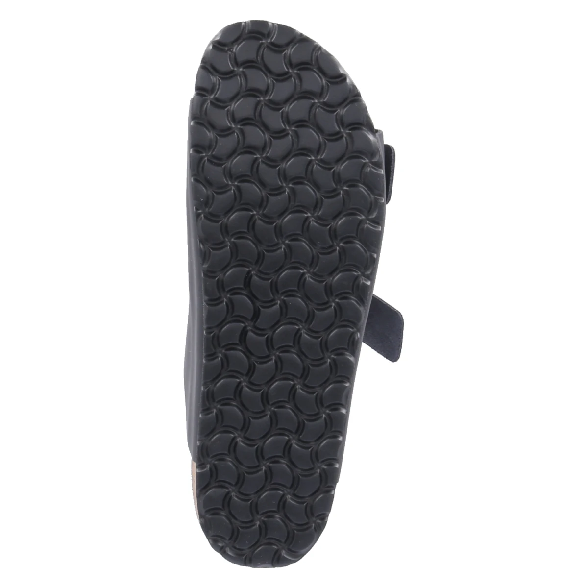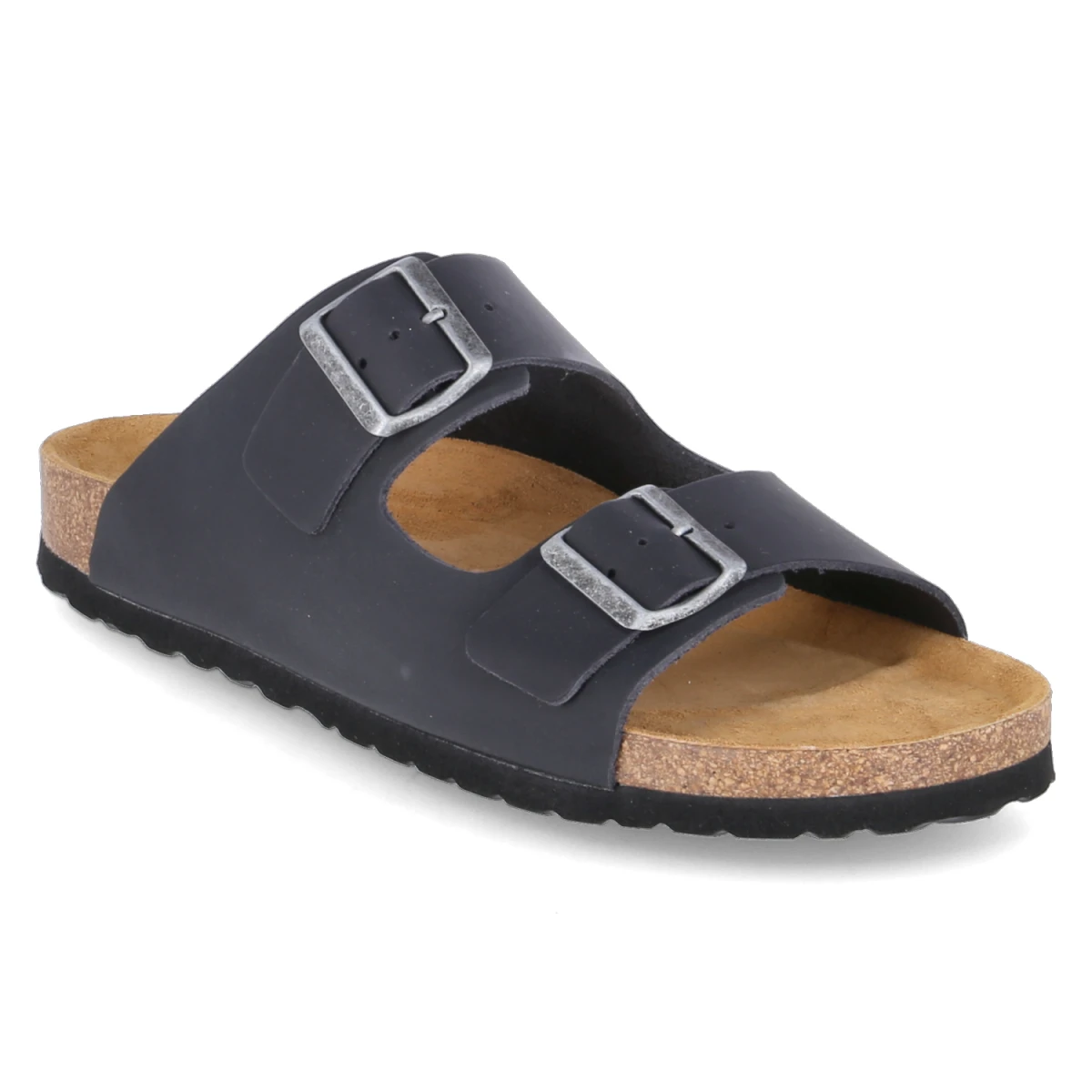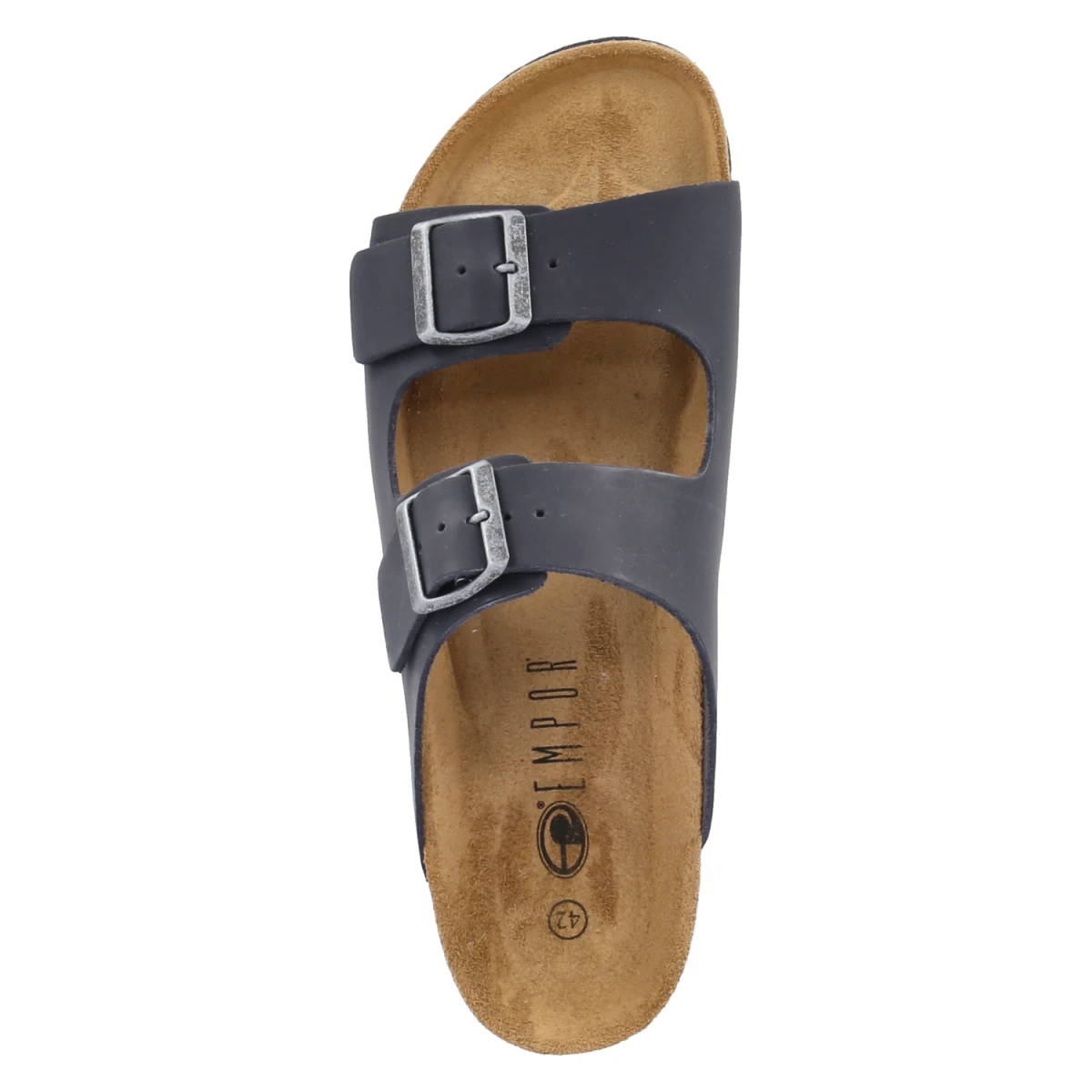 Die Pantoletten von Empor verbinden lässige Optik mit funktionaler Ausstattung. Glattes, robustes Echtleder prägt den cleanen Look in Blau und sorgt für Langlebigkeit. Zwei verstellbare Schnallen ermöglichen eine passgenaue Weitenregulierung, während die offene Schuhspitze für ein angenehm luftiges Tragegefühl steht. Das vorgeformte Kork-Tieffußbett mit Lederbezug und das weich gepolsterte Fußbett unterstützen komfortables Gehen im Alltag. Eine profilierte EVA-Laufsohle bietet zuverlässigen Halt auf verschiedenen Untergründen. Der Schnitt fällt normal aus und macht die Größenauswahl unkompliziert. Ob Freizeit, City oder Urlaub, diese Pantoletten setzen auf Komfort ohne Kompromisse. Modetipp: Mit heller Leinenhose und lockerer Oxford-Bluse in Weiß oder Navy entsteht ein zeitlos-frischer Sommerlook.