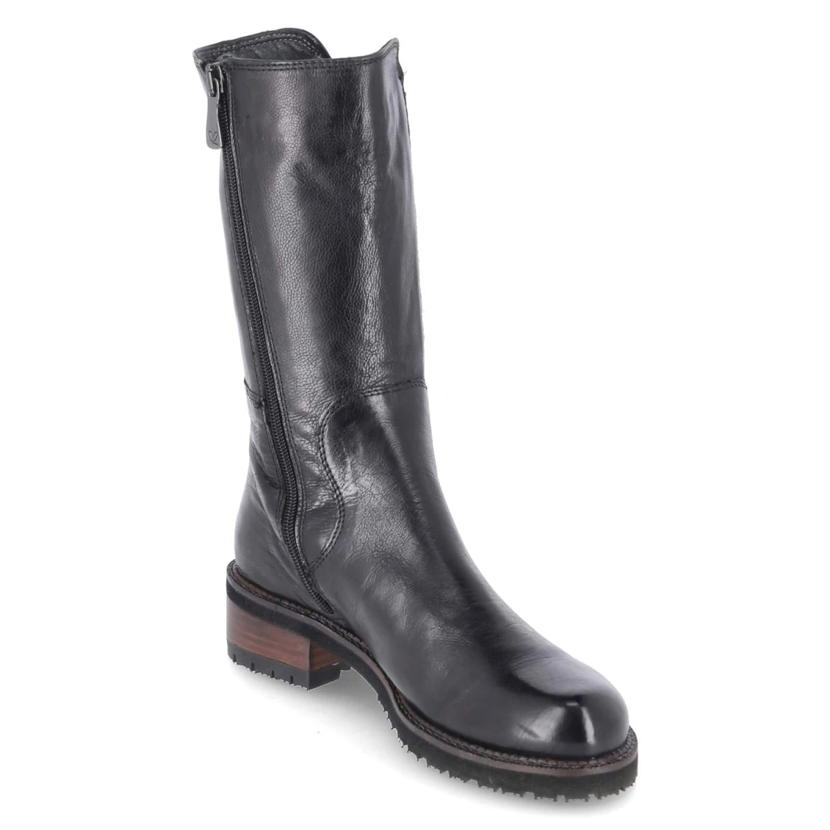 Der Stiefel LYCHNS von Everybody vereint zeitlose Eleganz mit durchdachtem Tragekomfort. Schwarzes Glattleder in langlebiger Qualität sorgt für eine edle Optik, während die runde Schuhspitze und der 4,5 cm hohe Blockabsatz einen stabilen, entspannten Auftritt ermöglichen. Der bequeme Reißverschlußeinstieg wird durch einen breiten seitlichen Elastikeinsatz ergänzt, der die Passform am Schaft (ca. 25 cm Höhe, ca. 28 cm Umfang) angenehm variabel macht. Innen verwöhnt weiches Textil- bzw. Fleecefutter, die textile Decksohle liegt sanft am Fuß. Die flexible, rutschfeste Laufsohle unterstützt sicheren Halt im Alltag. Das Modell fällt größengetreu aus und eignet sich als vielseitiger Begleiter für Büro und Freizeit. Modetipp: Zur schmalen Anzughose und einem Oversize-Wollmantel getragen, entsteht ein moderner Look mit klarer Linie.