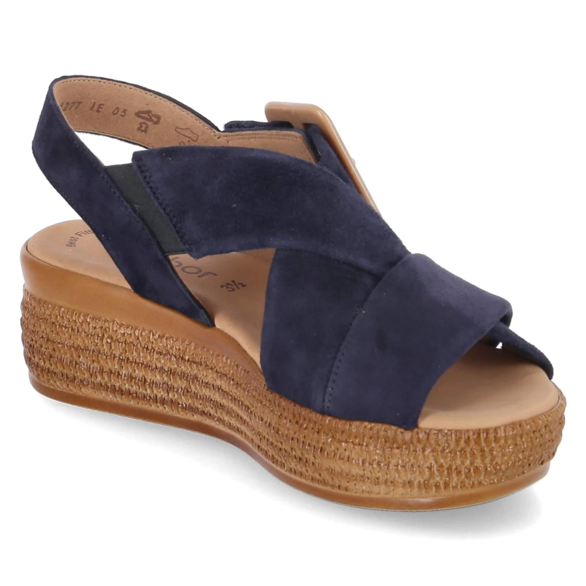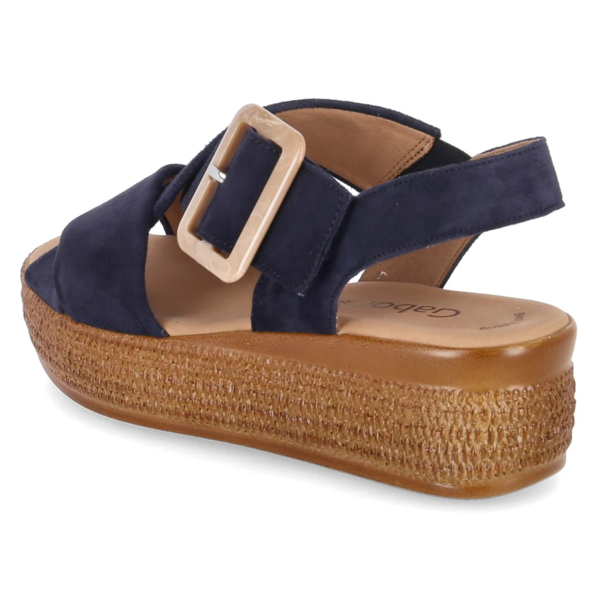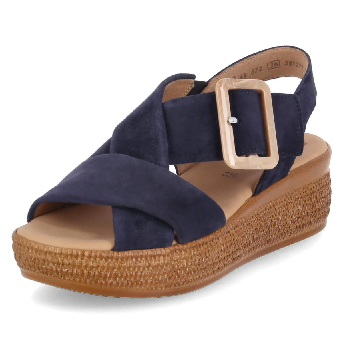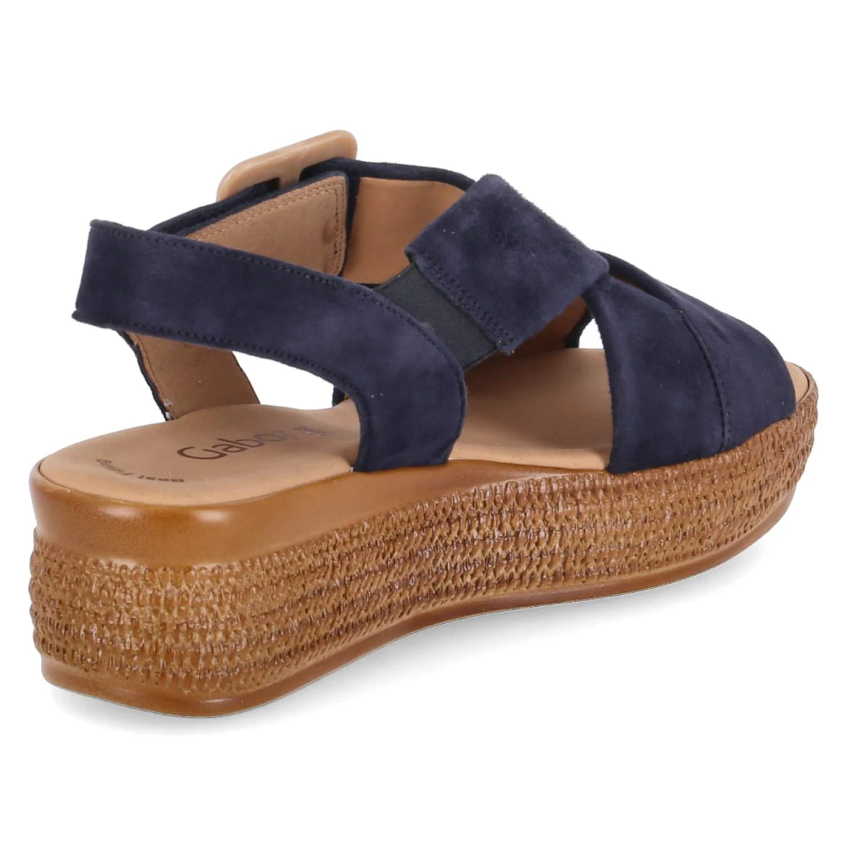 Die blauen Plateausandaletten von Gabor vereinen sommerliche Leichtigkeit mit komfortbetontem Design. Das Obermaterial aus feinem Rauleder zeigt eine samtige Oberfläche, die dem Modell eine edle Anmutung verleiht. Offene Schuhspitze, gepolstertes Fußbett und die 5 cm hohe Plateau-Absatzform sorgen für ein bequemes Laufgefühl mit sanfter Erhöhung. Ein bequemer Klettverschluss erleichtert das An- und Ausziehen; der Klettverschlussriemen mit Zierschnalle setzt einen dezenten Akzent. Zusätzlichen Halt bietet der Knöchelriemen mit Elastikeinsatz. Die Decksohle aus Leder schmiegt sich angenehm an, während der Sohlenrahmen in Flechtoptik sommerliche Nuancen aufnimmt. Das Modell fällt normal aus und eignet sich für verschiedenste Anlässe von City bis Urlaub. Modetipp: Zu hellen Leinenhosen und einer luftigen Bluse wirken die Blautöne besonders frisch; goldfarbener Schmuck greift die Zierschnalle stilvoll auf.
