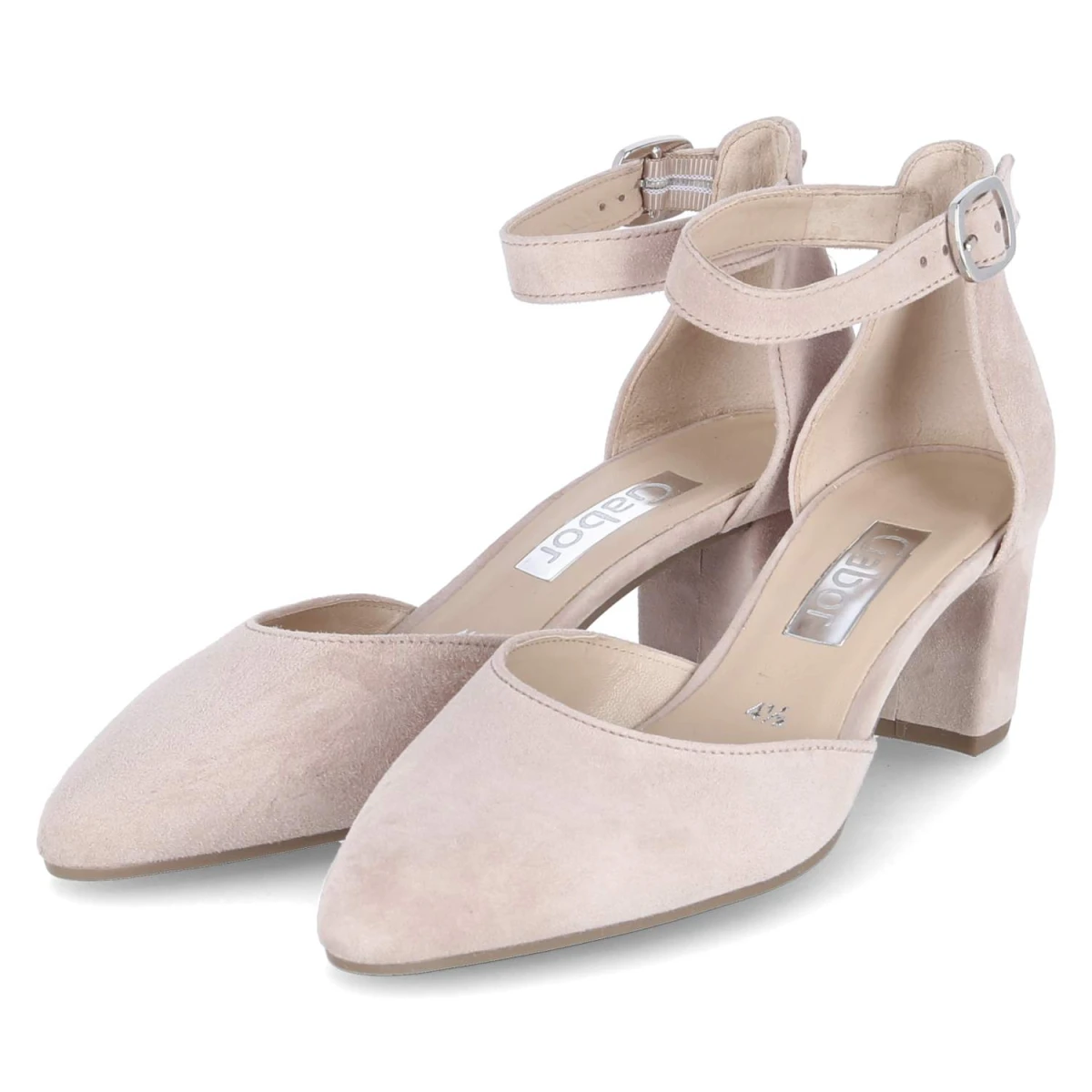Gabor Spangenpumps im D’Orsay-Design in zartem Rosa setzen feminine Akzente. Samtig anmutendes Rauleder trifft auf eine spitz zulaufende Silhouette, die das Bein optisch streckt. Ein stabiler Blockabsatz mit etwa 6 cm Höhe bietet angenehme Balance, während Lederfutter und leicht gepolsterte Lederdecksohle für sanften Auftritt sorgen. Der Knöchelriemen mit Elastikeinsatz und Schnalle hält zuverlässig, die verstärkte Ferse gibt zusätzlichen Halt. Eine flexible, rutschhemmende Laufsohle begleitet souverän durch den Tag. Dank der guten Kombinationsmöglichkeiten wird das Modell zum Allrounder von Büro bis Event. Modetipp: Zartes Rosa wirkt besonders edel zu cremefarbenen Satinhosen oder einem grafischen Schwarz-Weiß-Midikleid.
