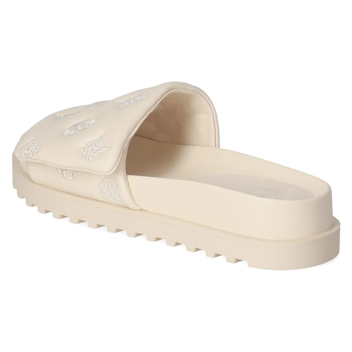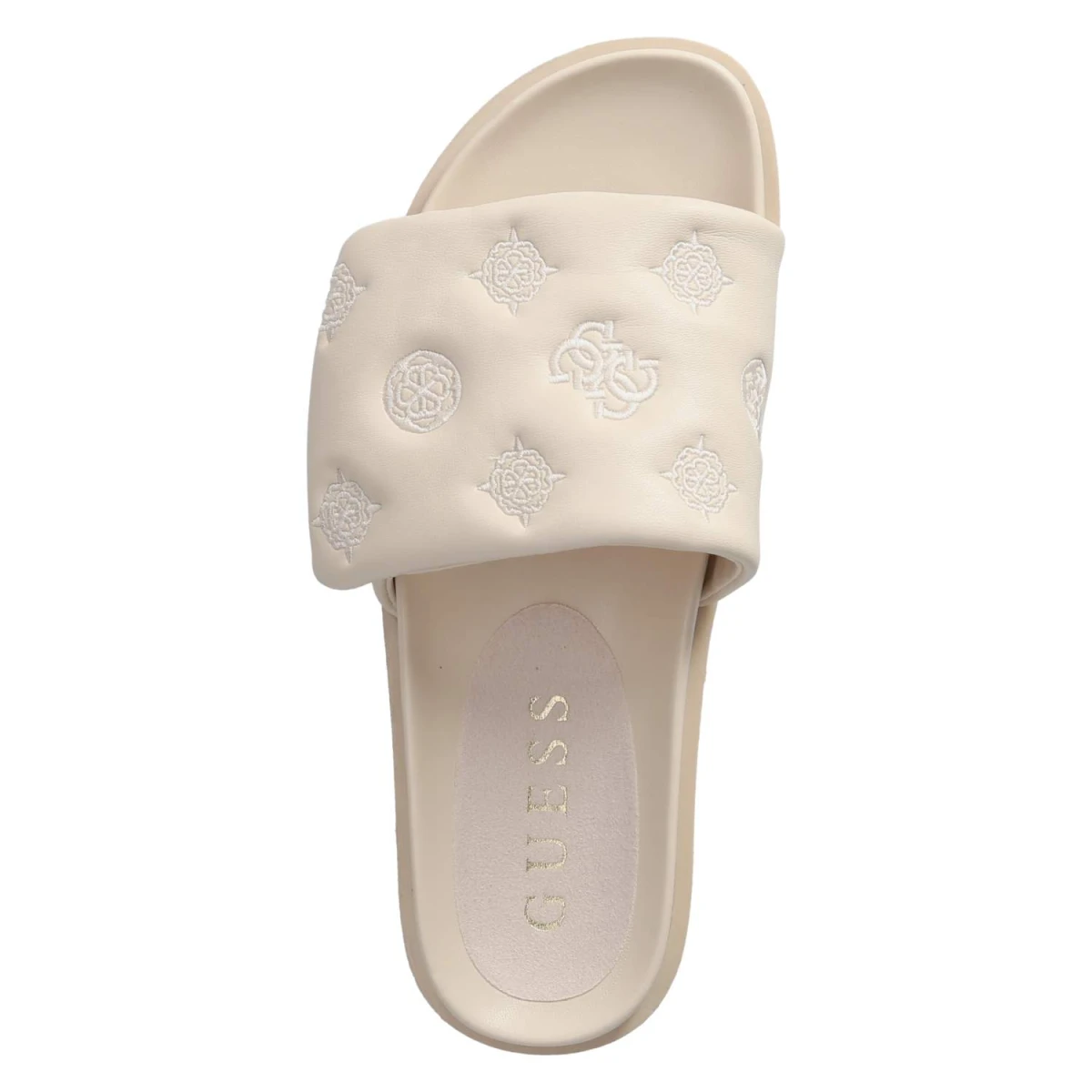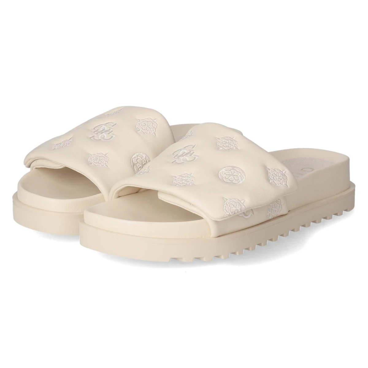 Diese Damen-Pantoletten von Guess in sanftem Beige verbinden lässige Eleganz mit hohem Tragekomfort. Das modern designte Obermaterial aus Synthetik präsentiert eine klare Linienführung und eine offene Schuhspitze, die luftig und zeitgemäß wirkt. Ein vorgeformtes, gepolstertes Fußbett mit Decksohle aus Textil und Synthetik sorgt für weiche Dämpfung, während die flexible, rutschhemmende Laufsohle zuverlässigen Halt bietet. Der bequeme Klettverschluss erlaubt ein schnelles Anpassen und hält den Fuß sicher, ohne aufzutragen. Aufgestickte Markendetails setzen einen dezenten Akzent, der sowohl im Alltag als auch auf Reisen überzeugt. Der Schnitt fällt normal aus und erleichtert die Größenauswahl. Modetipp: Ton-in-Ton zu Leinen in Creme oder Sand getragen entsteht ein monochromes Sommer-Statement, perfekt mit einer filigranen Goldkette und einer strukturierten Mini-Bag.