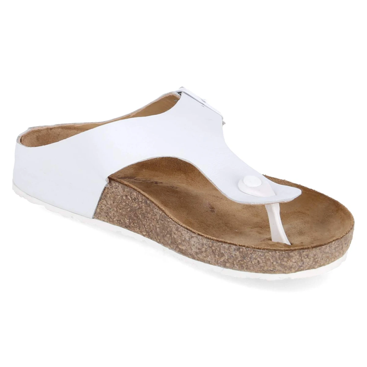 Der Zehentrenner MEMPHIS von Haflinger vereint pures Understatement mit spürbarer Qualität. Weißes Glattleder prägt den klassischen Look, während der verstellbare Riemen mit metallischer Schnalle sicheren Halt ermöglicht. Die lederne Decksohle und das vorgeformte, gepolsterte Tieffußbett bieten angenehme Dämpfung und unterstützen den natürlichen Stand, ideal für längere Tage auf den Beinen. Die flexible, griffige Laufsohle sorgt für Stabilität auf unterschiedlichen Untergründen, die offene Schuhspitze bringt sommerliche Leichtigkeit ins Outfit. Das Modell fällt normal aus und überzeugt durch langlebiges Echtleder, das mit der Zeit eine individuelle Patina entwickeln kann. Modetipp: Zu einer hellen Leinenhose und einem luftigen Hemd kombinieren, dazu feiner Schmuck und eine schlichte Umhängetasche für einen modernen, entspannten City-Look.