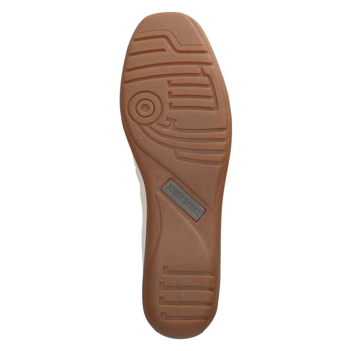 Ballerinas FENJA 01 von Josef Seibel verbinden puristische Eleganz mit lässigem Komfort. Das weiße Obermaterial aus hochwertigem Glattleder zeigt eine ruhige, glatte Oberfläche, die durch die runde Schuhspitze besonders feminin wirkt. Atmungsaktives Echtleder umschließt den Fuß, die lederne Decksohle und das weich gepolsterte Fußbett sorgen auch an langen Tagen für angenehmes Gehgefühl. Ohne Verschluss gestaltet sich der Einstieg unkompliziert; eine dezente Anziehhilfe mit elastischem Einsatz erleichtert das Hineinschlüpfen. Die flexible Laufsohle mit verlässlichem Grip unterstützt natürliche Abrollbewegungen und macht den Ballerina zum souveränen Begleiter im Alltag. Der Schnitt fällt normal aus und bietet eine vertraute Passform. Modetipp: In Kombination mit Cropped-Chino und gestreiftem Shirt entsteht ein frischer City-Look; abends mit Satinrock und Strickcardigan elegant erweitern.