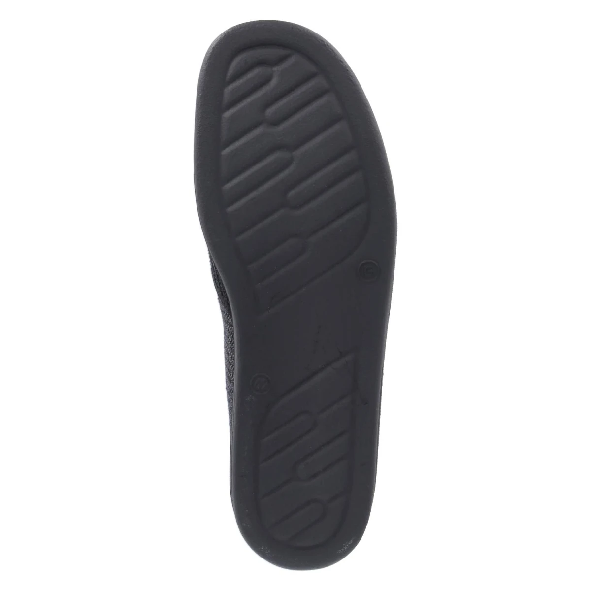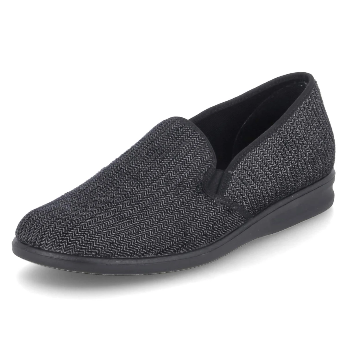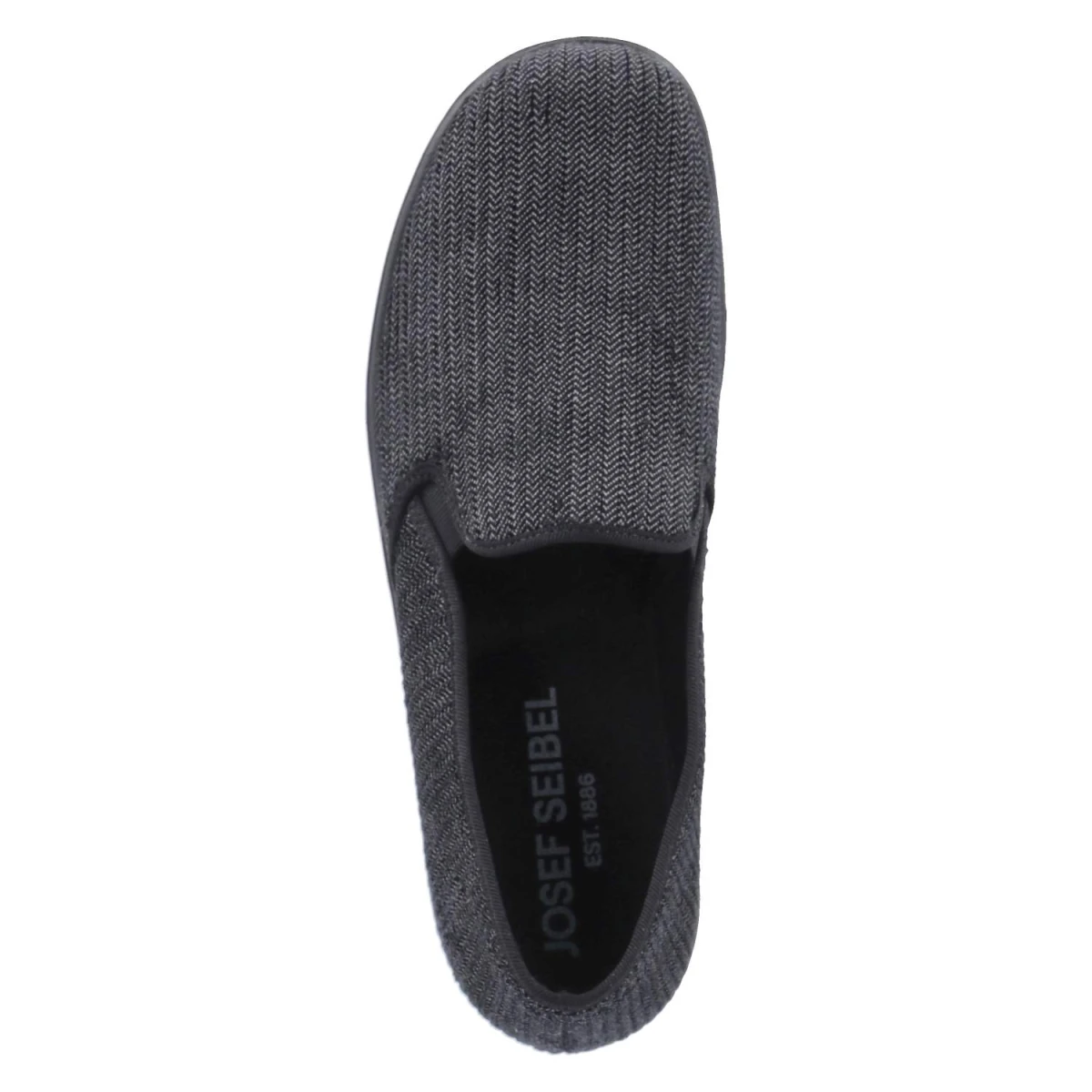 Der Hausschuh BELFORT 122 von Josef Seibel setzt auf entspannten Komfort mit einem robusten Textilobermaterial und zeitloser Ästhetik. In tiefem Schwarz gehalten, wird das dezente Fischgrätmuster zum eleganten Detail, das den klassischen Look unaufdringlich unterstreicht. Die runde Schuhspitze sorgt für ausreichend Zehenfreiheit, während seitliche Elastikeinsätze den Einstieg erleichtern und für einen sicheren Sitz ohne Druckpunkte stehen. Die flexible Laufsohle unterstützt natürliche Abrollbewegungen, das geringe Gewicht entlastet bei jedem Schritt. Innen bietet die Decksohle aus Leder-Textil eine angenehme Haptik und ein ausgewogenes Tragegefühl. Der Schnitt fällt normal aus und überzeugt im Alltag ebenso wie in entspannten Momenten nach langen Tagen. Modetipp: Zu einer feinen Strickhose und schmalem Cardigan tragen, dazu gemütliche, einfarbige Socken - so entsteht ein aufgeräumter Loungeblick mit subtiler Struktur.