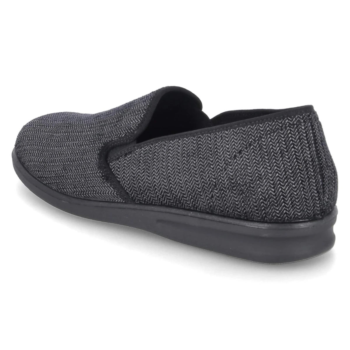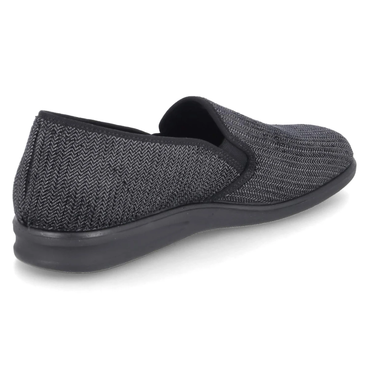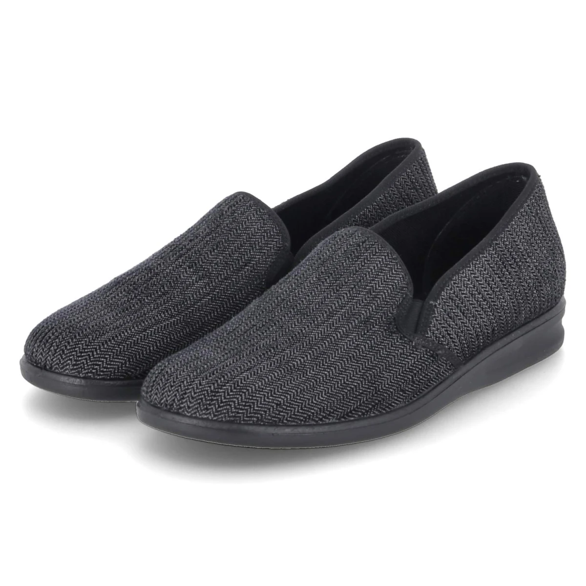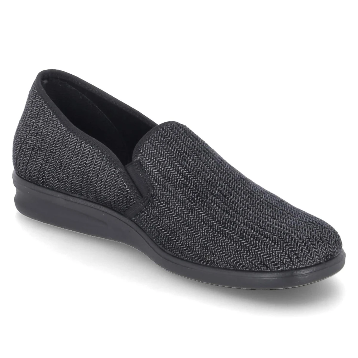 Der Hausschuh BELFORT 122 von Josef Seibel setzt auf entspannten Komfort mit einem robusten Textilobermaterial und zeitloser Ästhetik. In tiefem Schwarz gehalten, wird das dezente Fischgrätmuster zum eleganten Detail, das den klassischen Look unaufdringlich unterstreicht. Die runde Schuhspitze sorgt für ausreichend Zehenfreiheit, während seitliche Elastikeinsätze den Einstieg erleichtern und für einen sicheren Sitz ohne Druckpunkte stehen. Die flexible Laufsohle unterstützt natürliche Abrollbewegungen, das geringe Gewicht entlastet bei jedem Schritt. Innen bietet die Decksohle aus Leder-Textil eine angenehme Haptik und ein ausgewogenes Tragegefühl. Der Schnitt fällt normal aus und überzeugt im Alltag ebenso wie in entspannten Momenten nach langen Tagen. Modetipp: Zu einer feinen Strickhose und schmalem Cardigan tragen, dazu gemütliche, einfarbige Socken - so entsteht ein aufgeräumter Loungeblick mit subtiler Struktur.