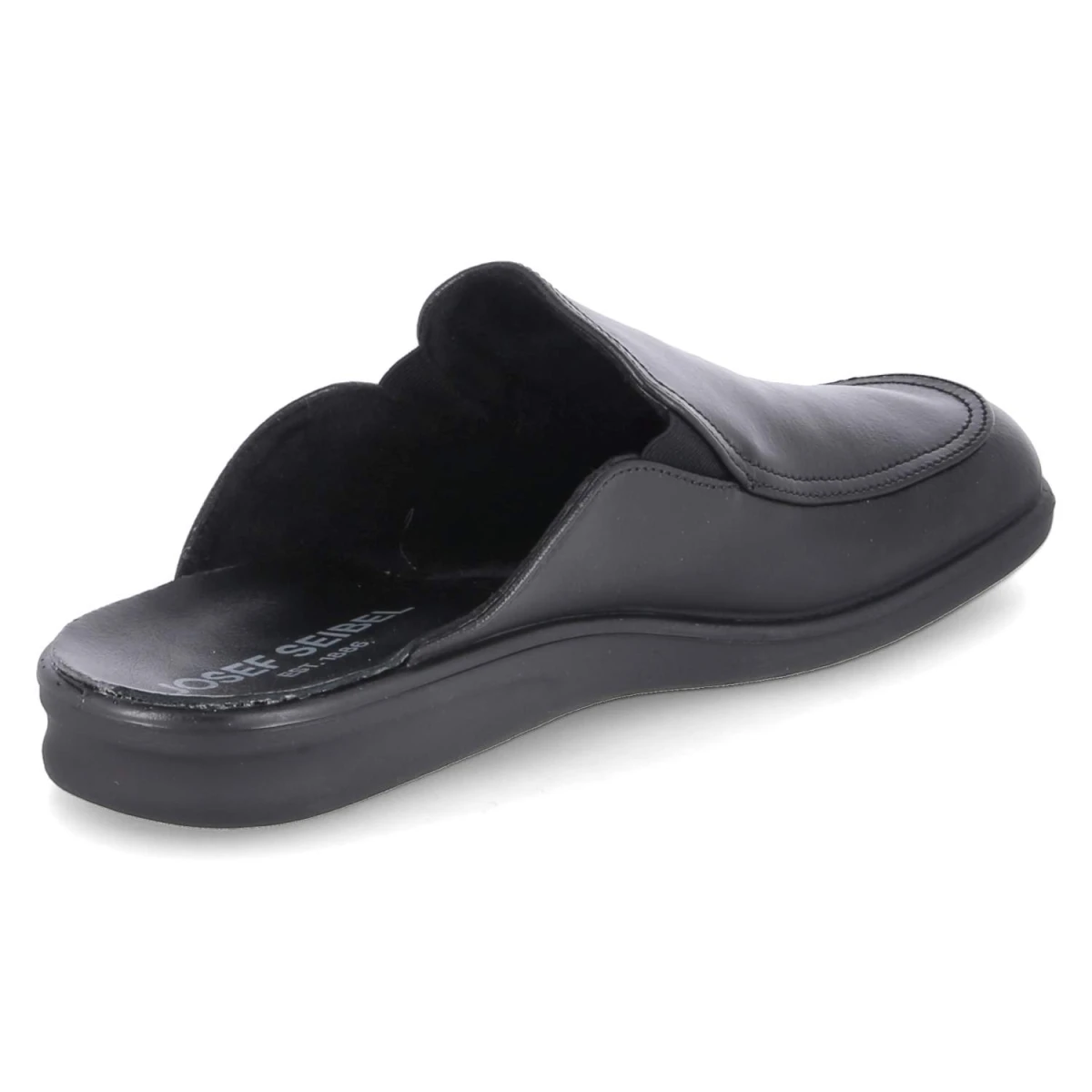 Der BELFORT 20 von Josef Seibel vereint authentisches Handwerk und entspannten Komfort für den Alltag zu Hause. Das Obermaterial aus schwarzem Glattleder wirkt besonders hochwertig, während die runde Schuhspitze und die kleinen Elastikeinsätze neben dem Spann für ein leichtes Hineinschlüpfen und eine angenehme Passform sorgen. Die Decksohle aus Leder-Textil fühlt sich angenehm an und unterstützt ein ausgeglichenes Fußklima. Eine flexible, griffige Laufsohle bietet Halt auf glatten Böden und ermöglicht leise, geschmeidige Schritte. Das langlebige Echtleder und das klassisch reduzierte Design machen den Hausschuh zum zeitlosen Begleiter. Hinweis zur Größe: fällt kleiner aus, daher am besten zwei Nummern größer bestellen. Modetipp: Zu einer feinen Strickhose und einem lockeren Cardigan in gedeckten Tönen entsteht ein edel-lässiger Home-Look.