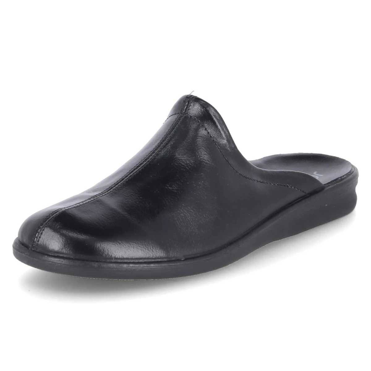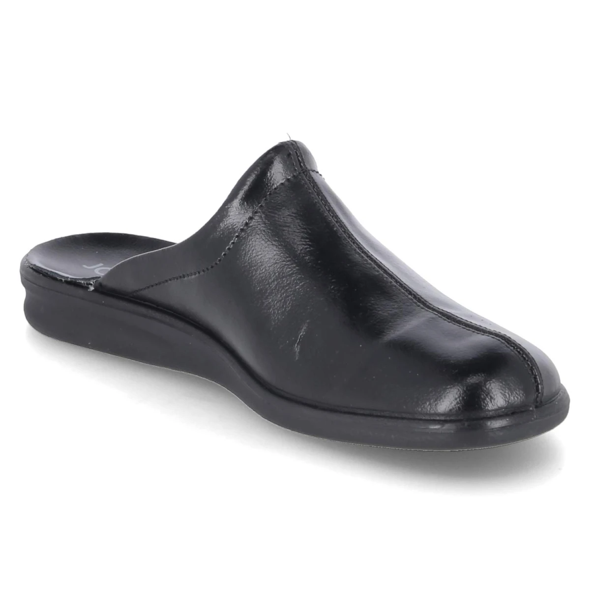 Die Hausschuhe BELFORT 450 von Josef Seibel interpretieren klassisches Design in zeitlosem Schwarz mit souveräner Zurückhaltung. Langlebiges Echtleder in glatter Ausführung formt das Obermaterial, die runde Schuhspitze und die flexible Sohle sorgen für angenehme Beweglichkeit im Alltag. Die Decksohle aus Leder-Textil und das dezent vorgeformte Fußbett bieten wohltuenden Halt ohne aufzutragen, der schlanke Schaft kommt ganz ohne Verschluss aus. Durch ihre klare Linienführung lassen sich die Pantoffeln vielseitig kombinieren - von Loungewear bis gepflegter Casualwear. Hinweis zur Passform: fällt kleiner aus, daher empfiehlt sich die Bestellung eine Nummer größer. Modetipp: Zu melierten Wollsocken und einer feinen Strickhose tragen; ein schwarzer Cardigan greift den Ton auf und unterstreicht die minimalistische Ästhetik.