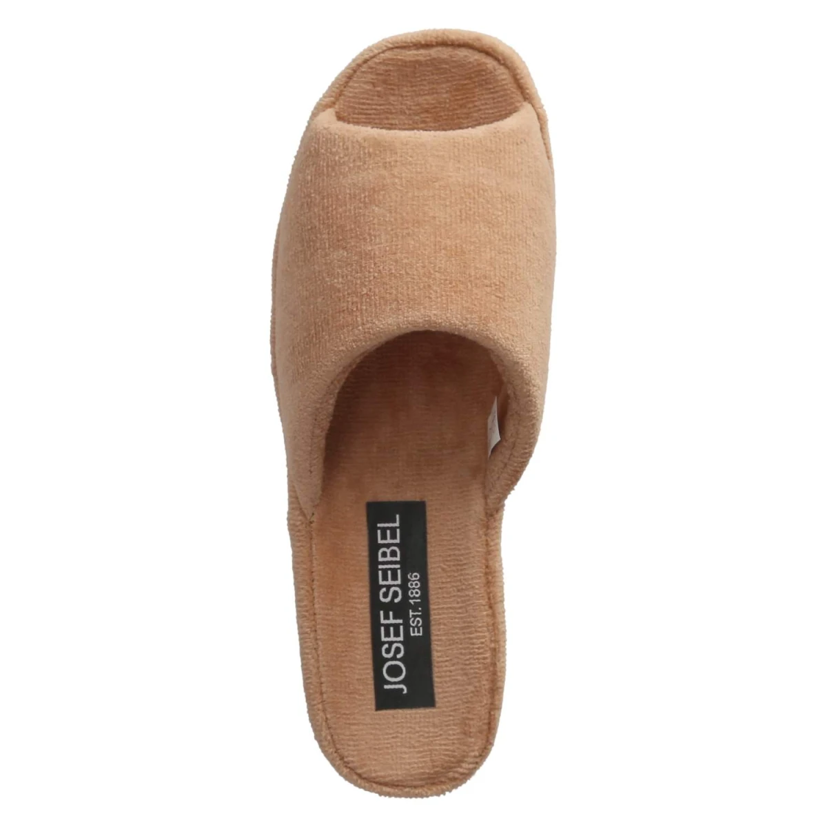 Der Hausschuh MARSEILLE 01 von Josef Seibel verbindet wohnlichen Komfort mit einem dezenten Modeakzent. Das braune Textil-Obermaterial zeigt eine feine Cordoptik und liegt als griffiger, weicher Stoff angenehm am Fuß. Der unkomplizierte Einstieg ohne Verschluss erleichtert das Hineinschlüpfen, während die offene Schuhspitze luftige Leichtigkeit schenkt. Ein leicht vorgeformtes Textilfußbett bietet sanfte Unterstützung, der etwa 4 cm hohe Keilabsatz sorgt für eine dezente Erhöhung und entlastet zugleich. Die flexible, rutschhemmende Laufsohle vermittelt Sicherheit auf glatten Böden, ideal für den Alltag zu Hause. Die Passform fällt normal aus und ist für Erwachsene konzipiert. Modetipp: Besonders harmonisch wirkt der MARSEILLE 01 zu Loungewear in warmen Sand- und Karamelltönen; ein grob gestrickter Cardigan und eine weite Jerseyhose greifen das Braun stilvoll auf und unterstreichen die offene, sommerliche Anmutung.