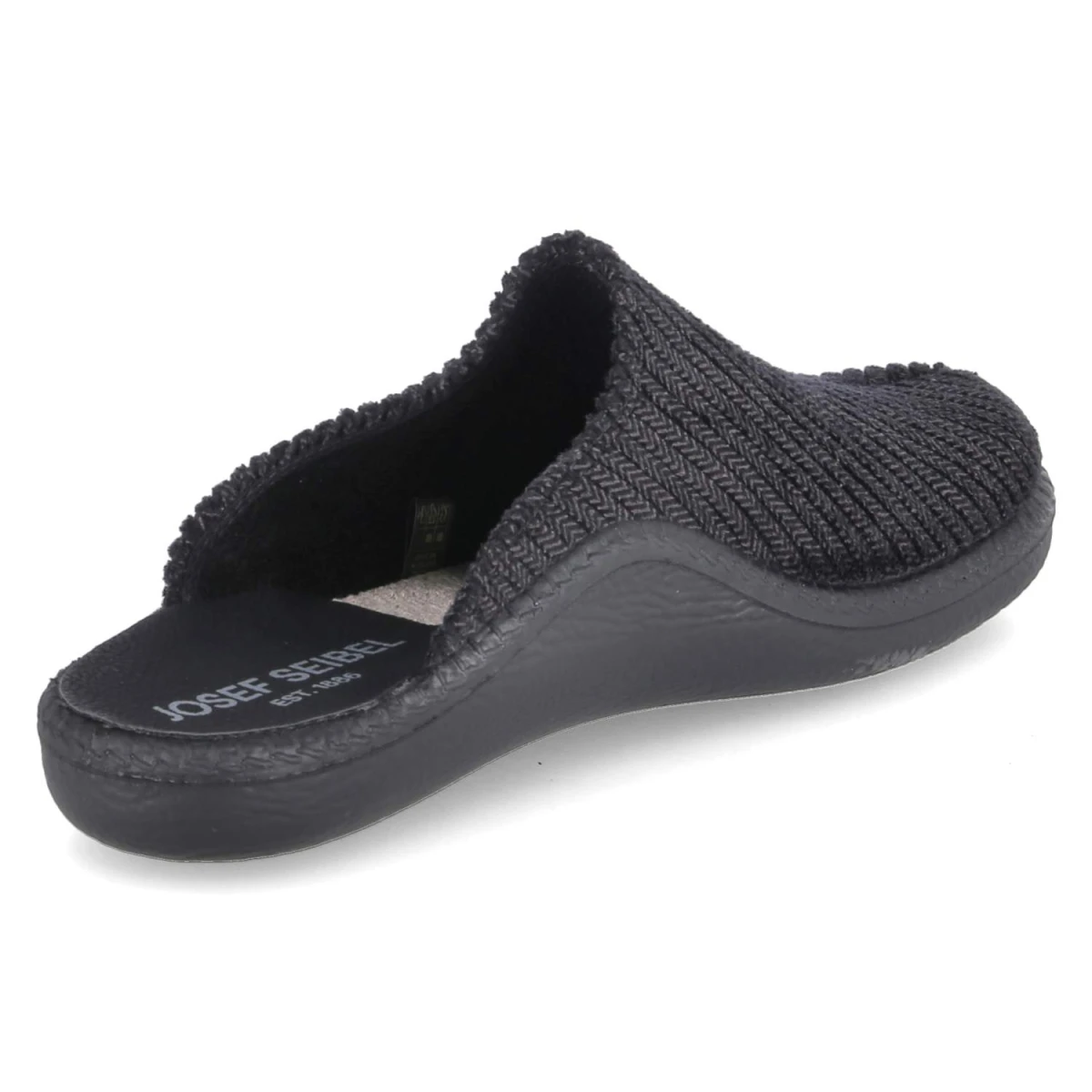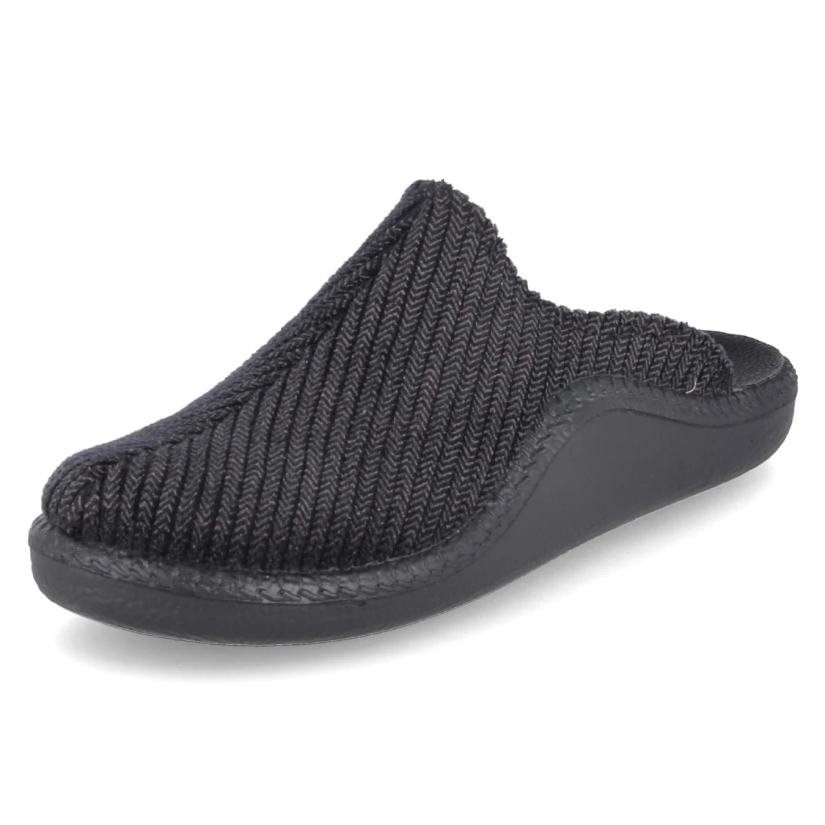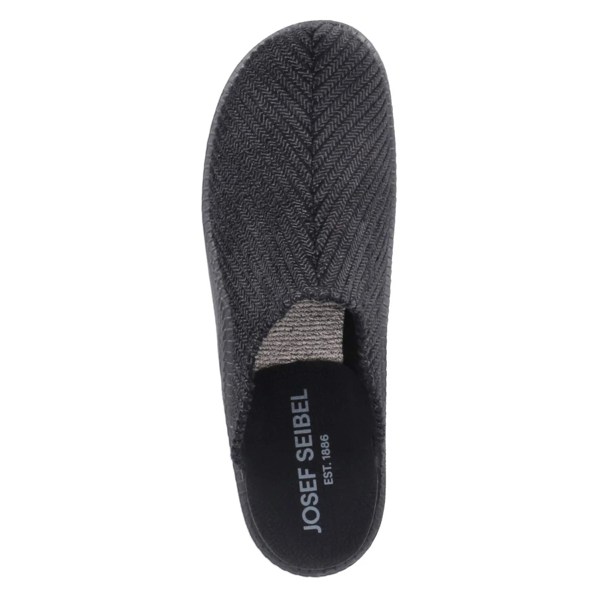 Die Hausschuhe MONACO 220 von Josef Seibel verbinden zeitloses Understatement mit funktionalem Komfort. Das robuste Textilobermaterial in Schwarz zeigt ein feines Fischgrätmuster und wird von einer runden Schuhspitze sowie einem klassischen Pantoffel-Schnitt abgerundet. Ohne Verschluss gestaltet, gelingt das Hineinschlüpfen schnell und bequem. Ein leicht vorgeformtes Fußbett mit seitlich hochgezogenem Sohlenbereich sorgt für stabilen Halt, während die Decksohle aus Leder-Textil angenehm am Fuß liegt. Die flexible, griffige und rutschhemmende Laufsohle bietet verlässliche Bodenhaftung auf glatten Untergründen. Der Schnitt fällt schmaler aus und eignet sich hervorragend für schmale Füße. Ein vielseitiger Begleiter für Erwachsene, die dezente Eleganz schätzen. Modetipp: Zu monochromer Loungewear in Anthrazit und einem feinen Strickcardigan kombinieren, um das Fischgrätmuster subtil in Szene zu setzen.