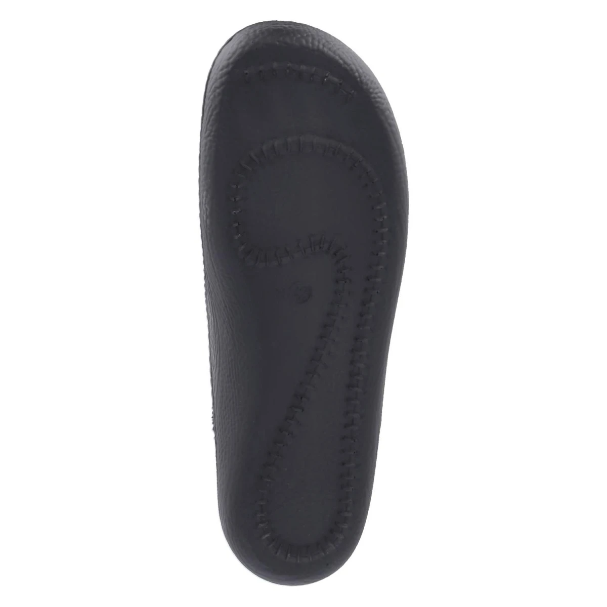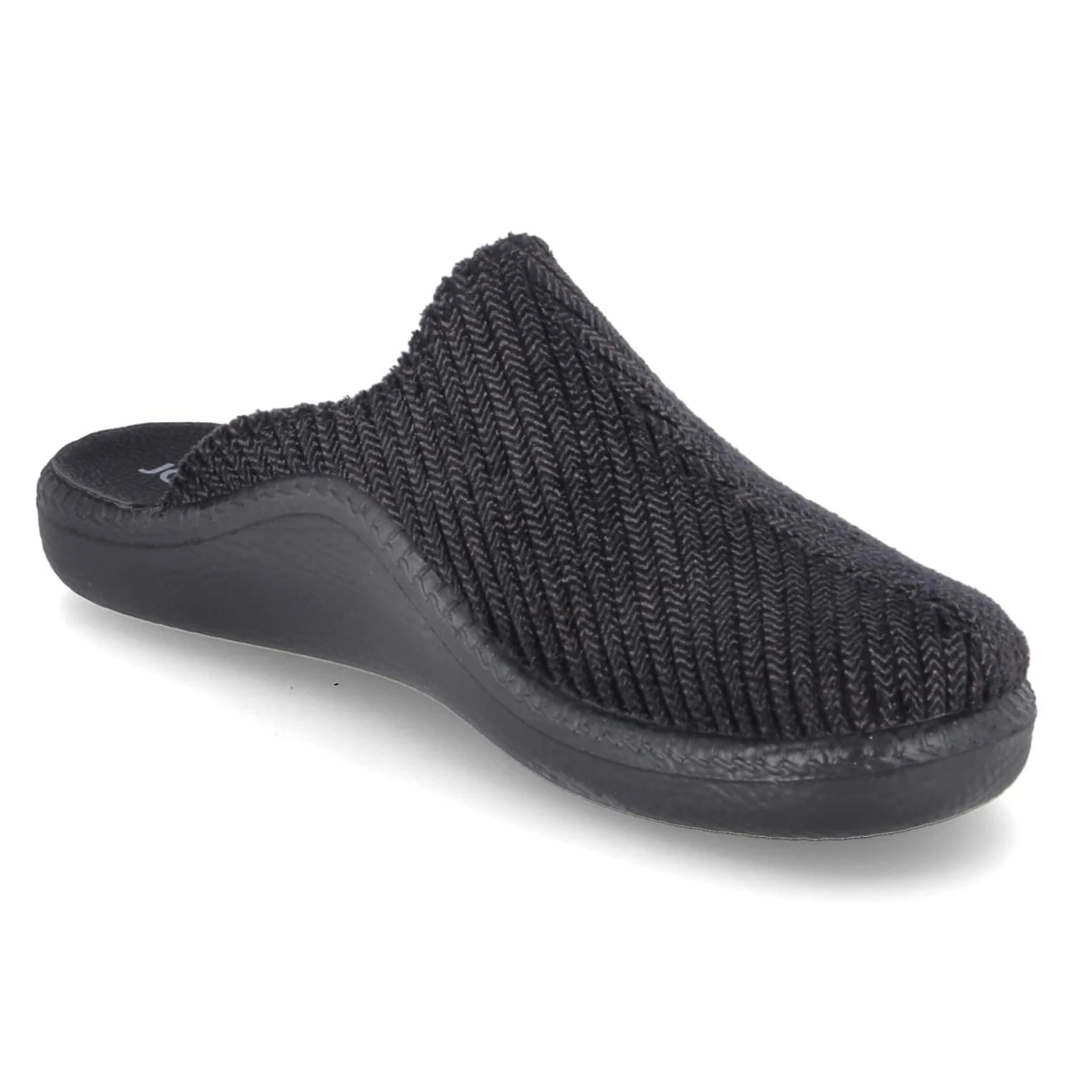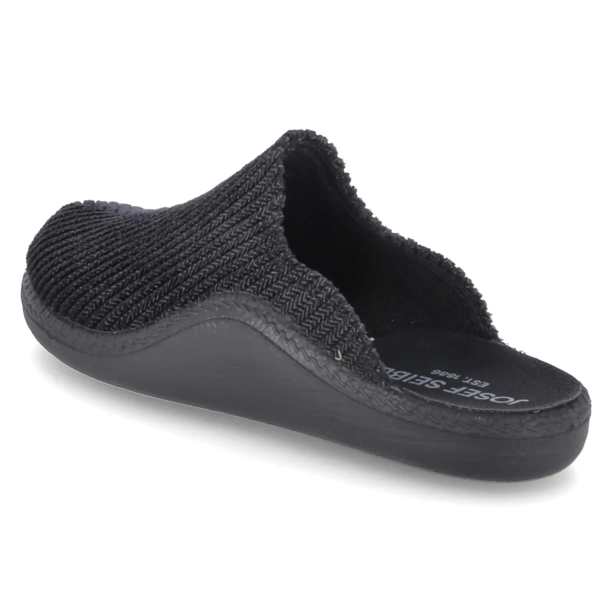 Die Hausschuhe MONACO 220 von Josef Seibel verbinden zeitloses Understatement mit funktionalem Komfort. Das robuste Textilobermaterial in Schwarz zeigt ein feines Fischgrätmuster und wird von einer runden Schuhspitze sowie einem klassischen Pantoffel-Schnitt abgerundet. Ohne Verschluss gestaltet, gelingt das Hineinschlüpfen schnell und bequem. Ein leicht vorgeformtes Fußbett mit seitlich hochgezogenem Sohlenbereich sorgt für stabilen Halt, während die Decksohle aus Leder-Textil angenehm am Fuß liegt. Die flexible, griffige und rutschhemmende Laufsohle bietet verlässliche Bodenhaftung auf glatten Untergründen. Der Schnitt fällt schmaler aus und eignet sich hervorragend für schmale Füße. Ein vielseitiger Begleiter für Erwachsene, die dezente Eleganz schätzen. Modetipp: Zu monochromer Loungewear in Anthrazit und einem feinen Strickcardigan kombinieren, um das Fischgrätmuster subtil in Szene zu setzen.