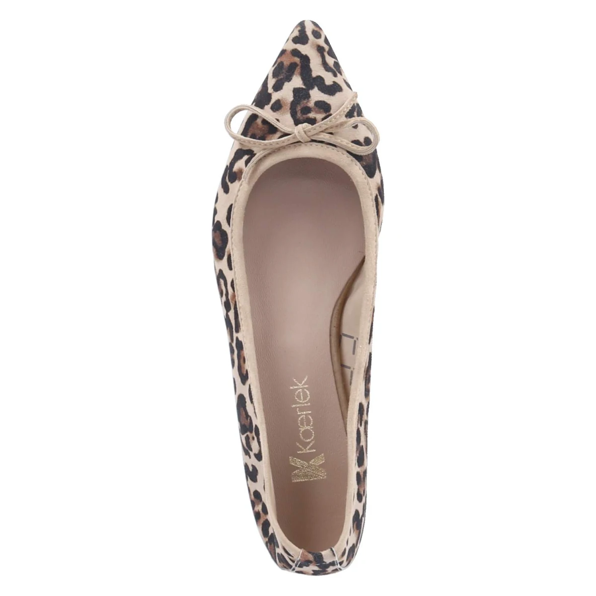 Der Ballerina von Kaerlek verbindet moderne Eleganz mit komfortabler Alltagstauglichkeit. Weiches Rauleder in Beige schmiegt sich geschmeidig an den Fuß, die spitz zulaufende Form streckt die Silhouette und setzt den Animal-Print im Leopard-Design stilvoll in Szene. Eine klassische Schleife akzentuiert den Zehenbereich, während die verstärkte Ferse Formstabilität und Halt verleiht. Dank Lederdecksohle überzeugt das Modell mit angenehmem Fußklima, die flexible, rutschhemmende Laufsohle bietet sicheren Tritt auf verschiedensten Untergründen. Das schlupffreundliche Design ohne Verschluss macht den Einstieg unkompliziert, die Passform fällt normal aus. So entsteht ein zeitloser Begleiter, der Büro- und Freizeitlooks gleichermaßen aufwertet. Modetipp: Besonders harmonisch wirkt das Modell zu schmaler Chino, feinem Strick und einem Trenchcoat in warmen Naturtönen.