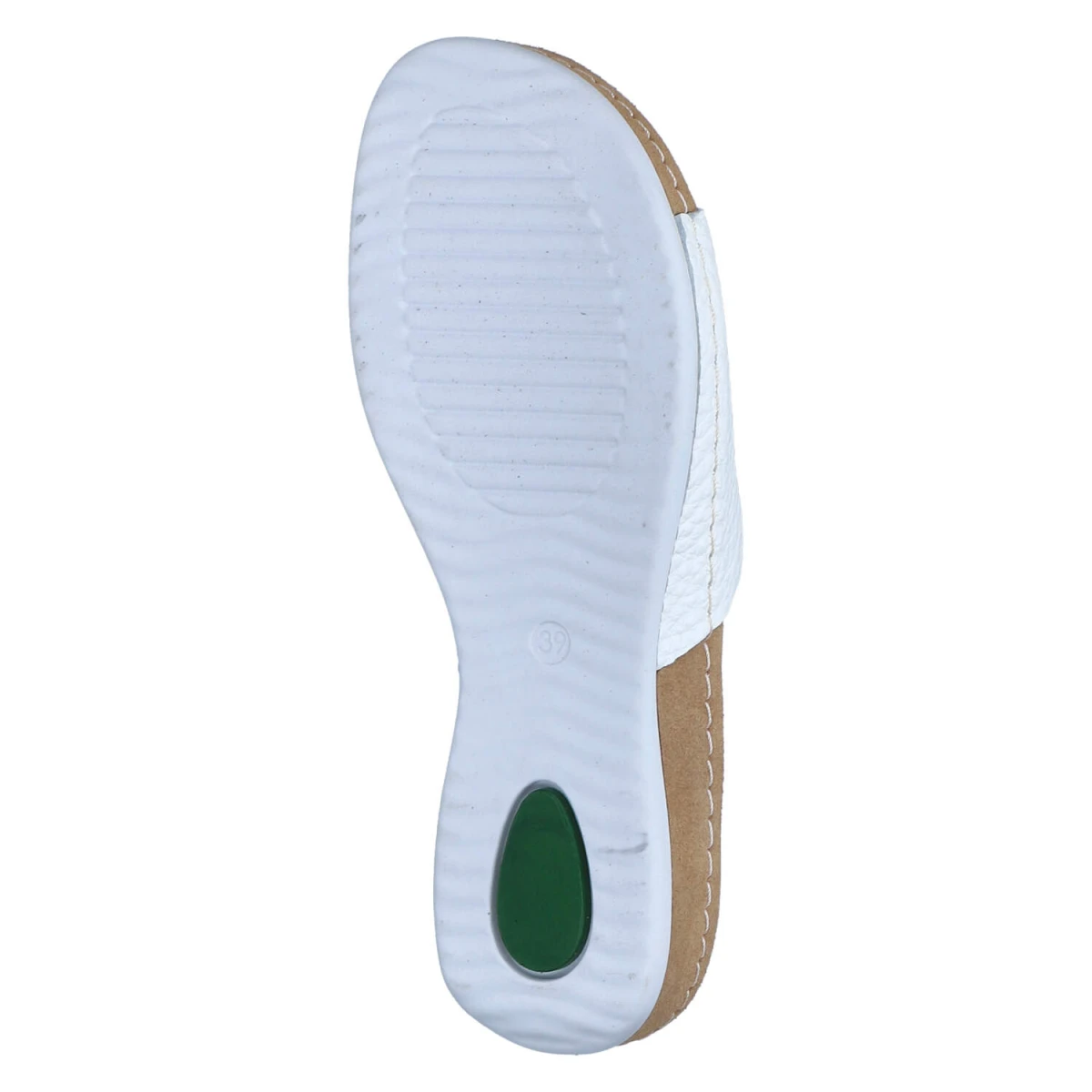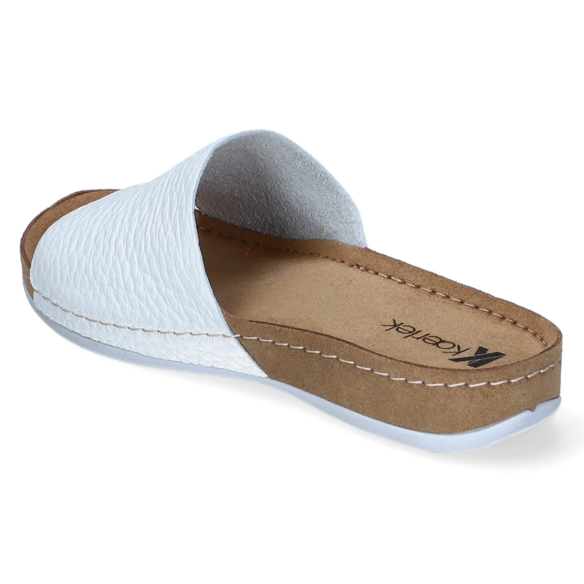 Die Pantoletten von Kaerlek verbinden reduziertes Design mit hohem Tragekomfort. Glattes, langlebiges Echtleder in strahlendem Weiß trifft auf einen breiten Riemen, der sicher über dem Spann liegt und dem offenen Schnitt eine elegante Note verleiht. Die hautfreundliche Lederdecksohle und das vorgeformte, weich gepolsterte Tieffußbett unterstützen den Fuß angenehm bei jedem Schritt. Dank flexibler, rutschhemmender Laufsohle mit leichtem Profil gelingen auch längere Wege entspannt. Ohne Verschluss entsteht sommerliche Leichtigkeit beim schnellen Hineinschlüpfen. Der Größenhinweis fällt schmaler aus und betont eine schlanke Silhouette. Modetipp: Zu Leinenkleidern oder einer weißen Culotte entsteht ein cleaner Look, der mit goldfarbenen Accessoires und einer dezenten Pediküre besonders edel wirkt.