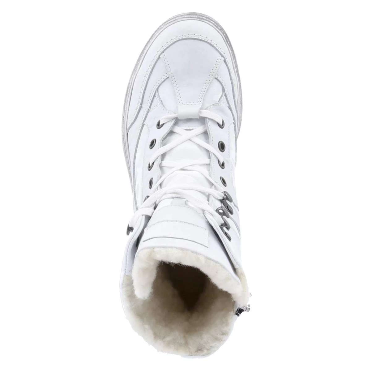 Winterboots von Krisbut, die Funktion und Stil souverän vereinen: Robustes Glattleder in frischem Weiß trifft auf ein warmes Textilfutter mit dezentem Camouflagemuster. Der 4 cm hohe Blockabsatz sorgt für stabilen Auftritt, während die flexible Profilsohle mit rotem Streifen Griffigkeit und einen markanten Akzent liefert. Dank Schnürung und Reißverschluss gelingt der Einstieg bequem; der gepolsterte Schaft schmiegt sich angenehm an. Das runde Zehenprofil sowie Zehen- und Fersenkappe bieten Schutz und Bewegungsfreiheit. Ein gepolstertes Wechselfußbett und die textile Decksohle erhöhen den Komfort, auch bei langen Tagen. Das geringe Gewicht macht den Winteralltag spürbar leichter. Der Schnitt fällt normal aus und eignet sich für verschiedenste Anlässe. Modetipp: Zurückhaltende Naturtöne und ein cremefarbener Wollmantel setzen das Weiß edel in Szene, ein olivfarbener Schal greift die Camouflage-Note gekonnt auf.