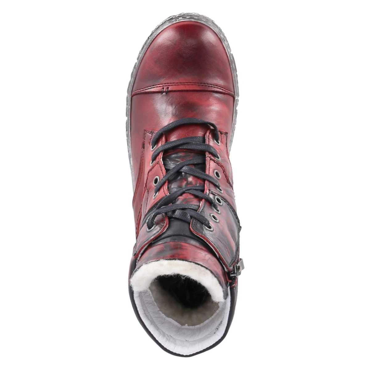 Krisbut Winterboots in leuchtendem Rot bringen Wärme und Charakter in graue Tage. Glattes, marmoriertes Echtleder mit rund gearbeiteter Zehenkappe verbindet Robustheit und femininen Look, während ein warmes Textilfutter zuverlässig durch kalte Stunden begleitet. Der 3 cm hohe Blockabsatz gibt Stand, die flexible Profilsohle im Used-Look sorgt für Grip auf winterlichen Wegen. Schnürung und zusätzlicher Reißverschluss erleichtern den Einstieg; der Schaft ist weich gepolstert, der Einstieg angenehm abgefedert. Das gepolsterte Wechselfußbett kann bei Bedarf gegen eigene Einlagen getauscht werden, die Passform fällt normal aus. Ein Allrounder für Erwachsene, die Komfort schätzen und ein Statement in Rot setzen möchten. Modetipp: Harmonisch zu Creme- und Camel-Tönen, etwa mit Strickkleid, Wollmantel und groben Rippstrümpfen, entsteht ein moderner City-Winterlook.