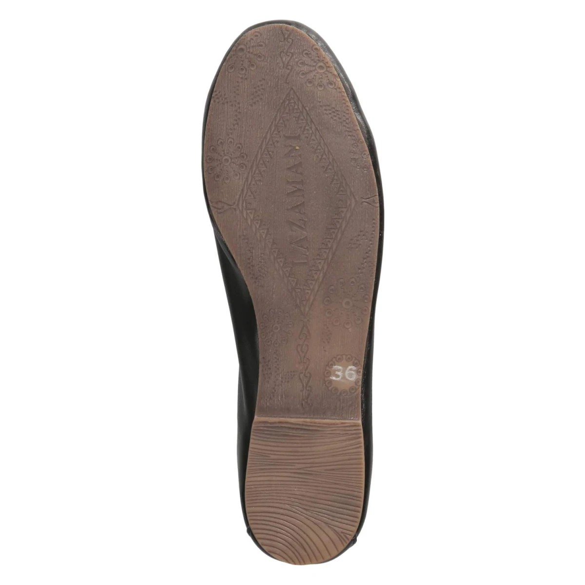 Zeitlos und präsent: Der Damen-Ballerina von LAZAMANI kombiniert edles Glattleder in Schwarz mit feinen Komfortdetails. Atmungsaktives Echtleder und ein angenehmes Lederfutter sorgen für ein ausgeglichenes Fußklima, während das gepolsterte Lederfußbett weichen Auftritt und langanhaltenden Komfort bietet. Der unkomplizierte Einstieg gelingt dank Schlupfform und Anziehlasche mühelos. Eine rund gearbeitete Spitze gewährt Zehenfreiheit, die verstärkte Ferse hält die Form und stützt bei jedem Schritt. Die flexible, rutschhemmende Laufsohle gibt Sicherheit auf glatten Böden. Dezente Zierschleife und klare Linien unterstreichen die elegante Schlichtheit. Fällt normal aus und begleitet souverän Büro, Alltag und Events. Modetipp: Besonders stilvoll zu knöchellanger Zigarettenhose und zarter Seidenbluse, dazu eine strukturierte Ledertasche.
