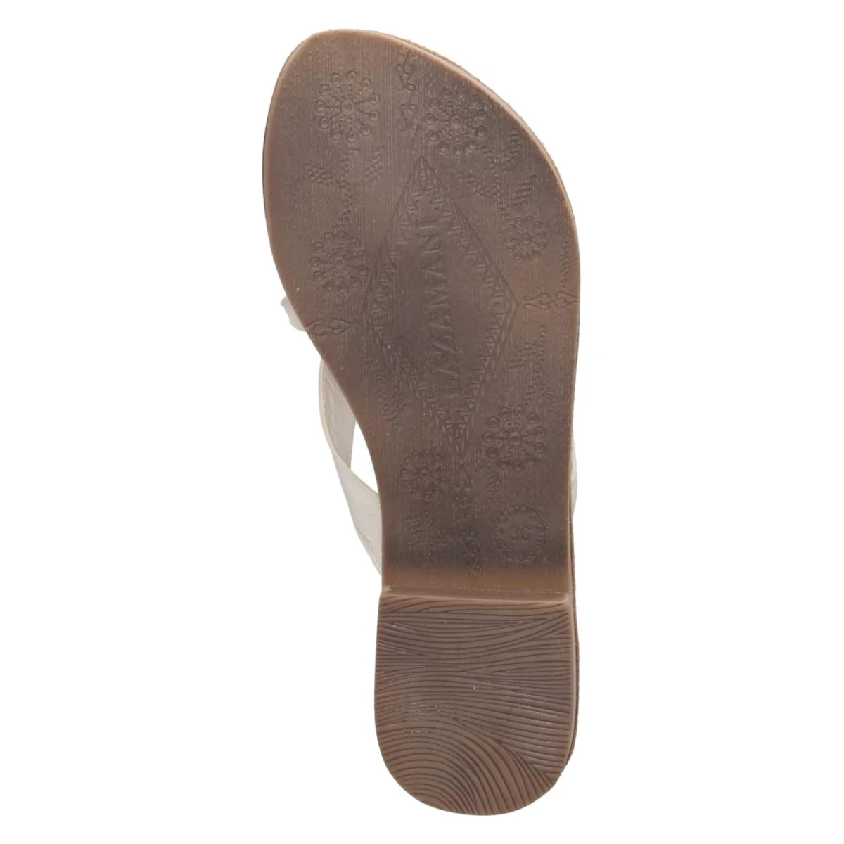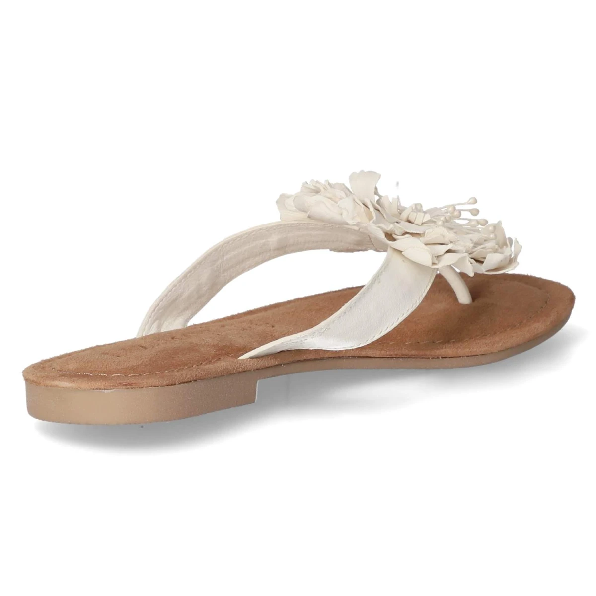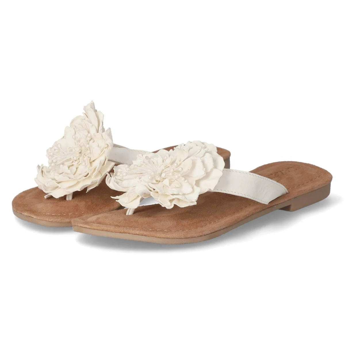 Der LAZAMANI Zehentrenner in strahlendem Weiß verbindet festliches Design mit sommerlicher Leichtigkeit. Das Obermaterial aus hochwertigem Glattleder und eine atmungsaktive Decksohle aus Echtleder sorgen für ein angenehmes Fußklima, während das gepolsterte Lederfußbett sanft dämpft. Die offene Schuhspitze unterstreicht die luftige Silhouette, die große, fein gearbeitete Blume am Zehenbereich setzt einen eleganten Akzent. Dank flexibler, griffiger Laufsohle bietet das Modell zuverlässigen Halt auf unterschiedlichsten Untergründen, ganz ohne Verschluss und im Handumdrehen angezogen. Die Passform fällt normal aus und eignet sich damit ideal für vielfältige Anlässe von Gartenparty bis Sommerhochzeit. Modetipp: Zu einem fließenden Midikleid in Pastelltönen und zarten Perlmutt-Accessoires getragen, entfaltet der weiße Zehentrenner seine festliche Ausstrahlung besonders stilvoll.