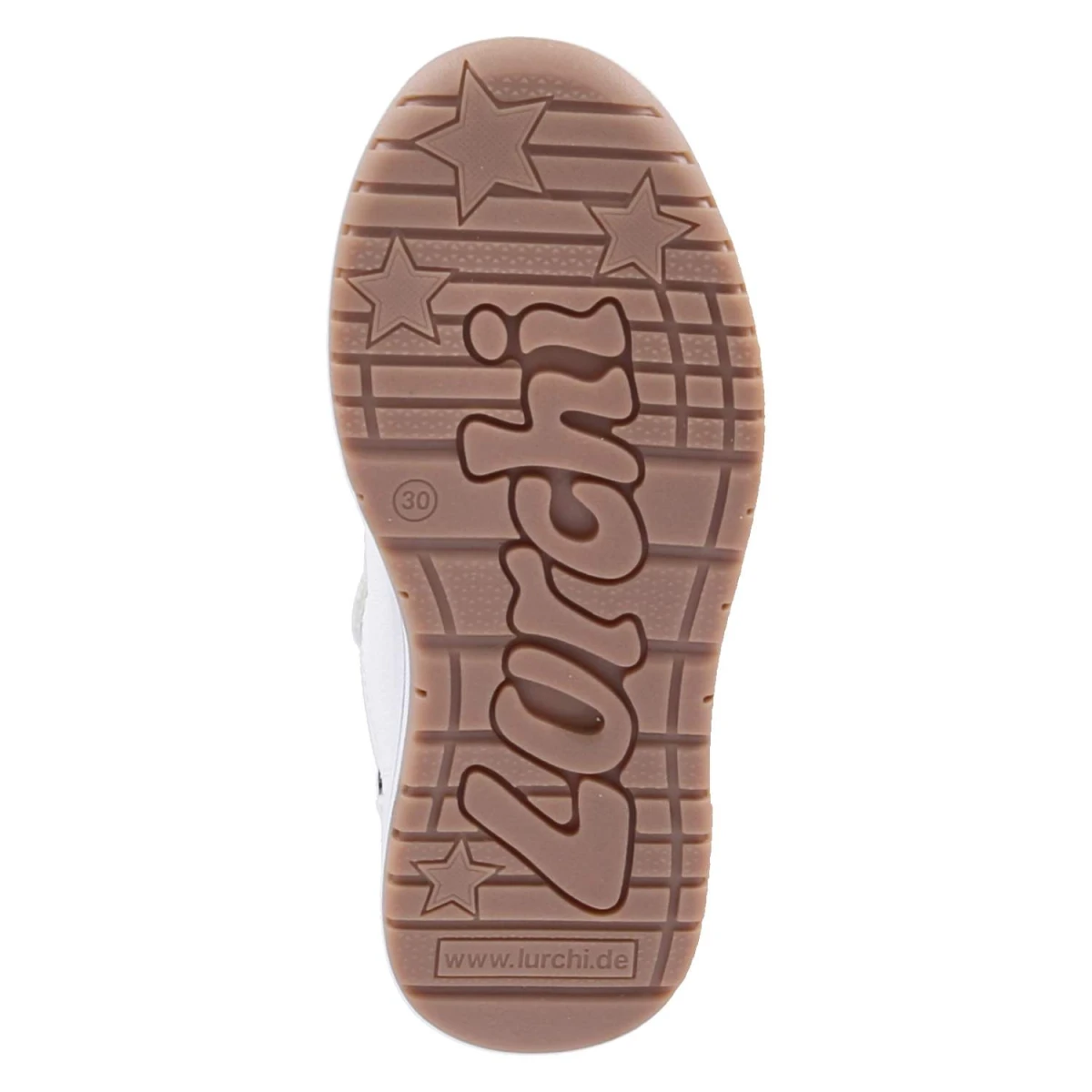 Die weißen Lurchi Klettschuhe für Kinder verbinden einen robusten Material-Mix aus Leder und Synthetik mit durchdachter Funktion. Zwei Klettriemen sorgen für schnellen Einstieg und sicheren Halt, der gepolsterte Schaftrand entlastet den Fuß im Alltag. Schwarze Seitenstreifen setzen sportliche Akzente, die runde Schuhspitze und der verstärkte Zehen- und Fersenbereich geben zusätzlichen Schutz beim Toben. Das gepolsterte, herausnehmbare Wechselfußbett aus Textil schafft angenehmen Tragekomfort und lässt sich bei Bedarf austauschen. Die flexible, griffige und rutschhemmende Laufsohle bietet zuverlässige Traktion auf verschiedenen Untergründen. Mit WMS Schuhweite W und normaler Passform fällt das Modell wie gewohnt aus. Gelabelte Details runden das Design ab und eröffnen gute Kombinationsmöglichkeiten. Modetipp: Zu Denim und Hoodie wirkt der Look lässig, mit farbigen Socken greifen Outfits die schwarzen Streifen stimmig auf.