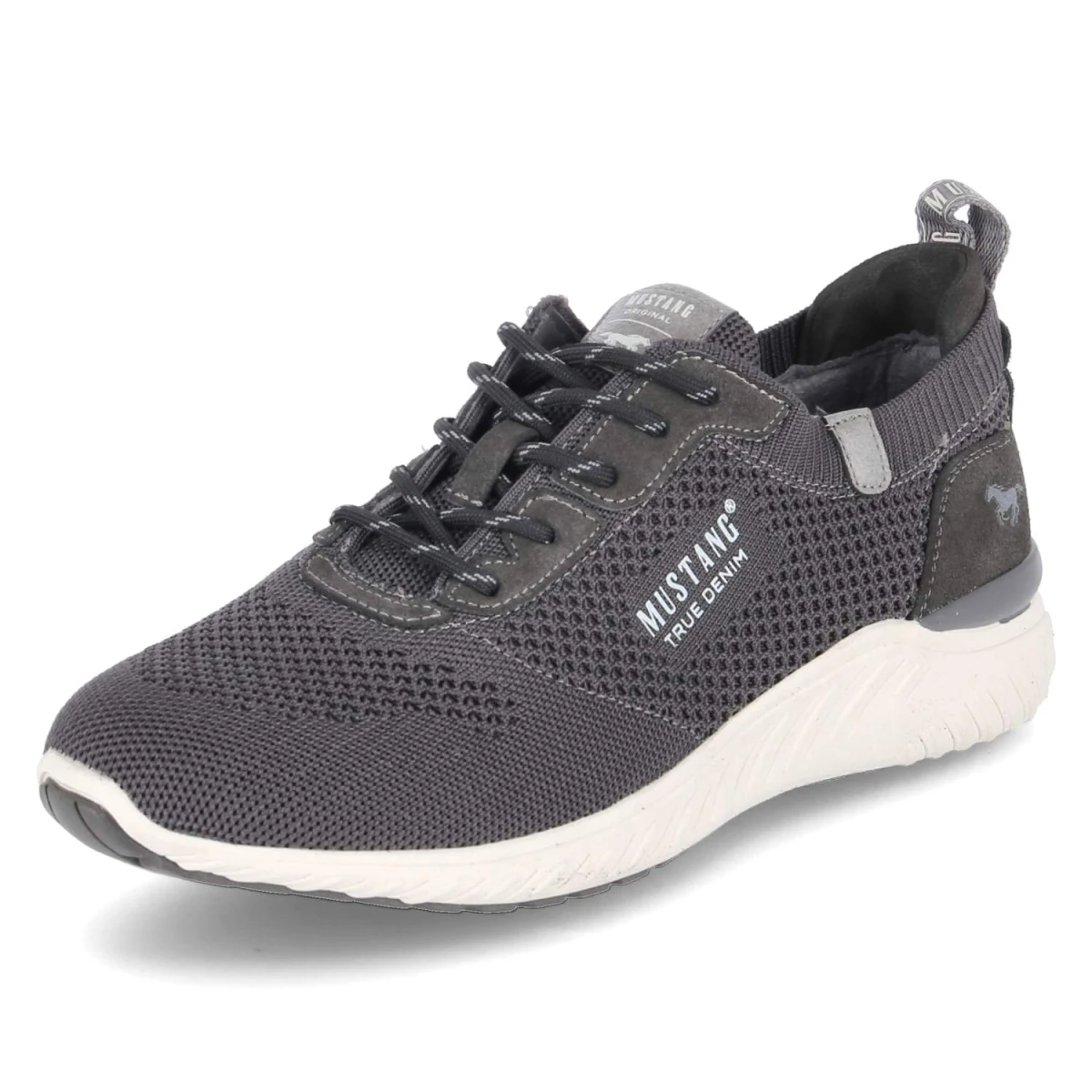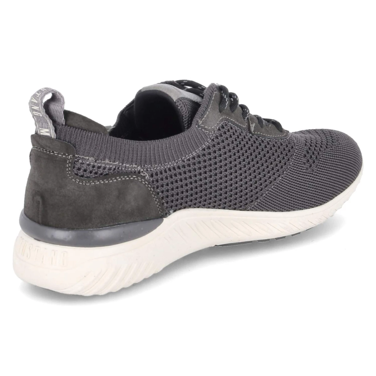 Der Low Sneaker von Mustang präsentiert sich in zeitlosem Grau und vereint sportlichen Look mit hohem Tragekomfort. Das Obermaterial aus Textil und Synthetik mit luftiger Mesh-Oberfläche und dezent gelochtem Muster sorgt für angenehme Belüftung, während der gepolsterte Einstieg und das weich gepolsterte Fußbett den Wohlfühlfaktor unterstreichen. Eine runde Schuhspitze, die klassische Schnürung sowie der verstärkte Fersenbereich garantieren sicheren Halt. Die flexible, griffige Laufsohle spielt ihre Stärken im Alltag aus und macht den Herrensneaker zum zuverlässigen Begleiter. Dank normaler Passform und Wechselfußbett lässt sich bei Bedarf eine eigene Einlage nutzen, ohne auf Komfort zu verzichten. Typische Markendetails runden das Modell stilsicher ab. Modetipp: Mit schmaler Denim, aufgekrempeltem Saum und einem leichten Strickpullover entsteht ein moderner Casual-Look, der vom Büro bis ins After-Work unkompliziert funktioniert.