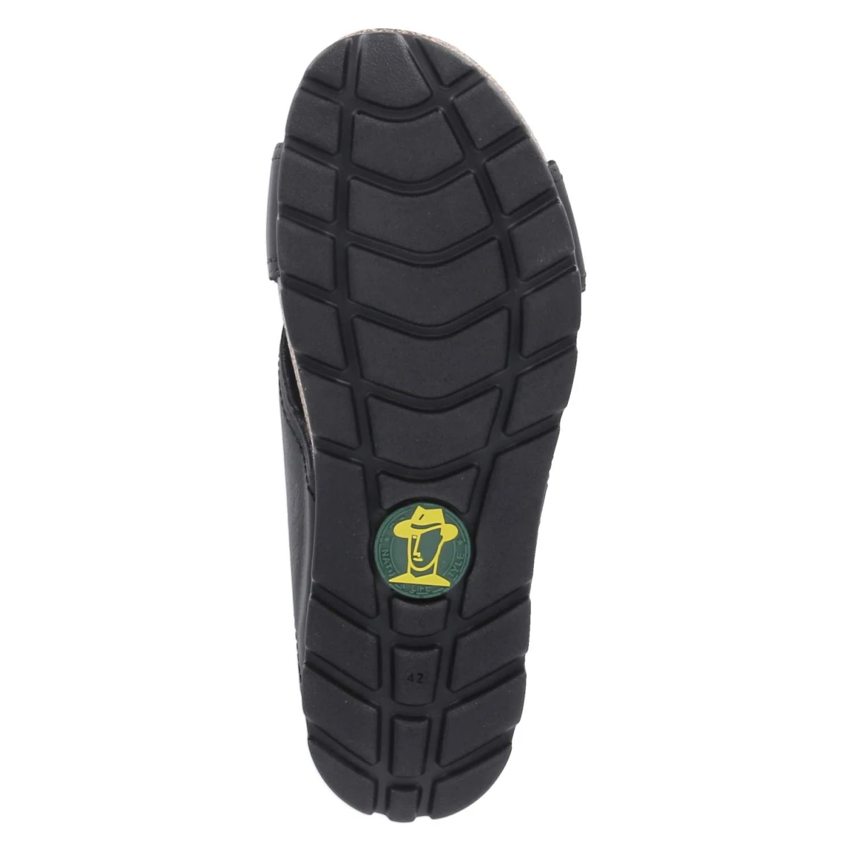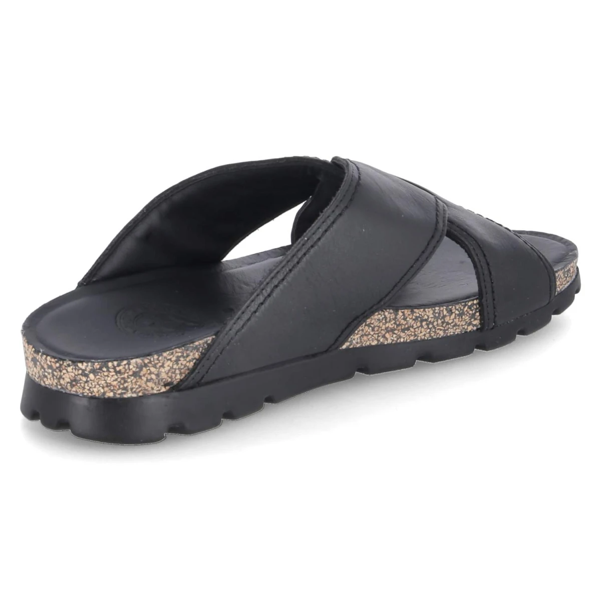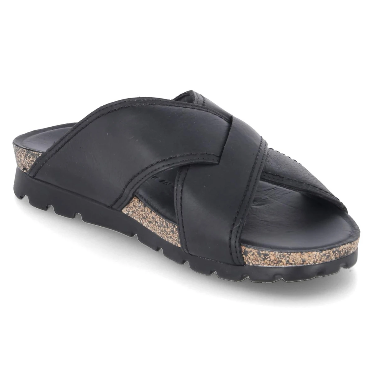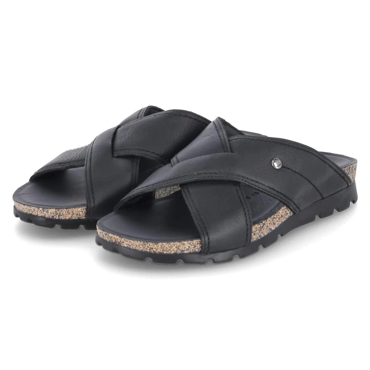 Die Pantoletten SALMAN von Panama Jack verbinden puristische Form mit hochwertiger Verarbeitung. Schwarzes Glattleder und breite, gekreuzte Riemen setzen ein klares Statement, der metallene Markenbutton akzentuiert dezent. Langlebiges Echtleder und ein hautfreundliches Lederfutter sorgen ebenso wie das vorgeformte, gepolsterte Lederfußbett für ein angenehm stützendes Tragegefühl. Die offene Schuhspitze und die flexible Profilsohle schaffen Luftigkeit und verlässlichen Grip im Alltag. Dank normaler Passform fällt die Größenwahl unkompliziert aus. Das zeitlose Design lässt sich mühelos in Freizeit- und City-Looks integrieren und überzeugt mit vielseitigen Kombinationsmöglichkeiten. Modetipp: Mit sandfarbener Leinenhose und lockerem Kurzarmhemd entsteht ein entspannt-eleganter Sommerlook, der durch einen Ledergürtel in Tonalität zum Schuh stilvoll abgerundet wird.