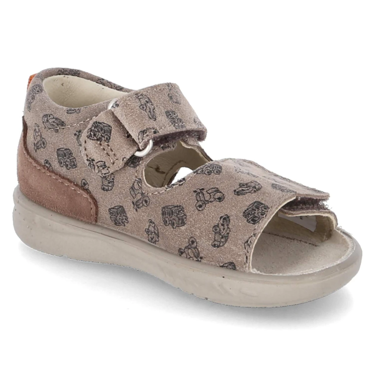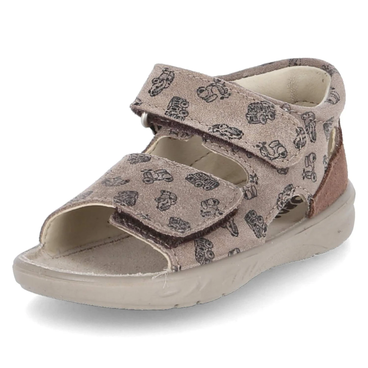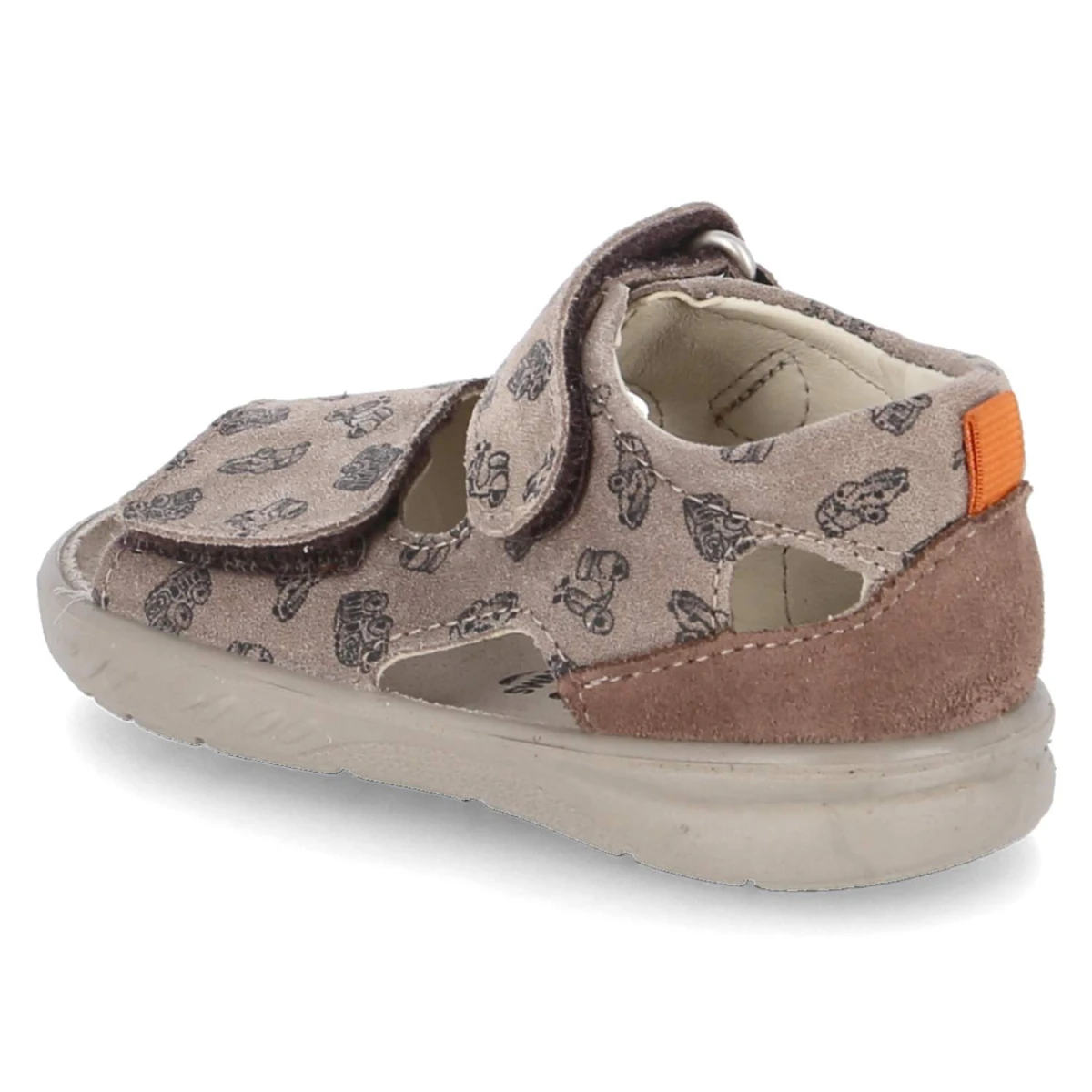 Die Sandale BANU von Pepino vereint langlebiges Echtleder mit kindgerechtem Komfort. Weiches Rauleder in warmem Braun schmiegt sich an den Fuß, während die hautfreundliche Lederdecksohle ein angenehmes Klima bewahrt. Zwei praktische Klettverschlüsse erleichtern das Hineinschlüpfen und sorgen für einen sicheren, individuell regulierbaren Sitz. Der verspielte Print mit verschiedenen Fahrzeugen setzt einen fröhlichen Akzent, der Kleinkindern Freude macht. Eine verstärkte Ferse und ein gepolsterter Einstieg bieten Halt und Bequemlichkeit bei jedem Schritt. Die offene Schuhspitze und die flexible, rutschhemmende Laufsohle unterstützen natürliche Bewegungen auf wechselndem Untergrund. Dank normaler Passform fällt die Größenwahl leicht, sodass der Alltag unbeschwert starten kann. Modetipp: Zu Leinen-Shorts und gestreiftem T-Shirt entsteht ein sommerlicher Look, den ein braunes Cap oder ein leichter Sonnenhut harmonisch ergänzt.