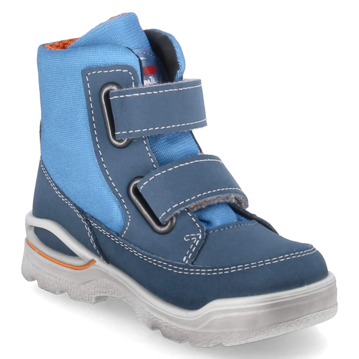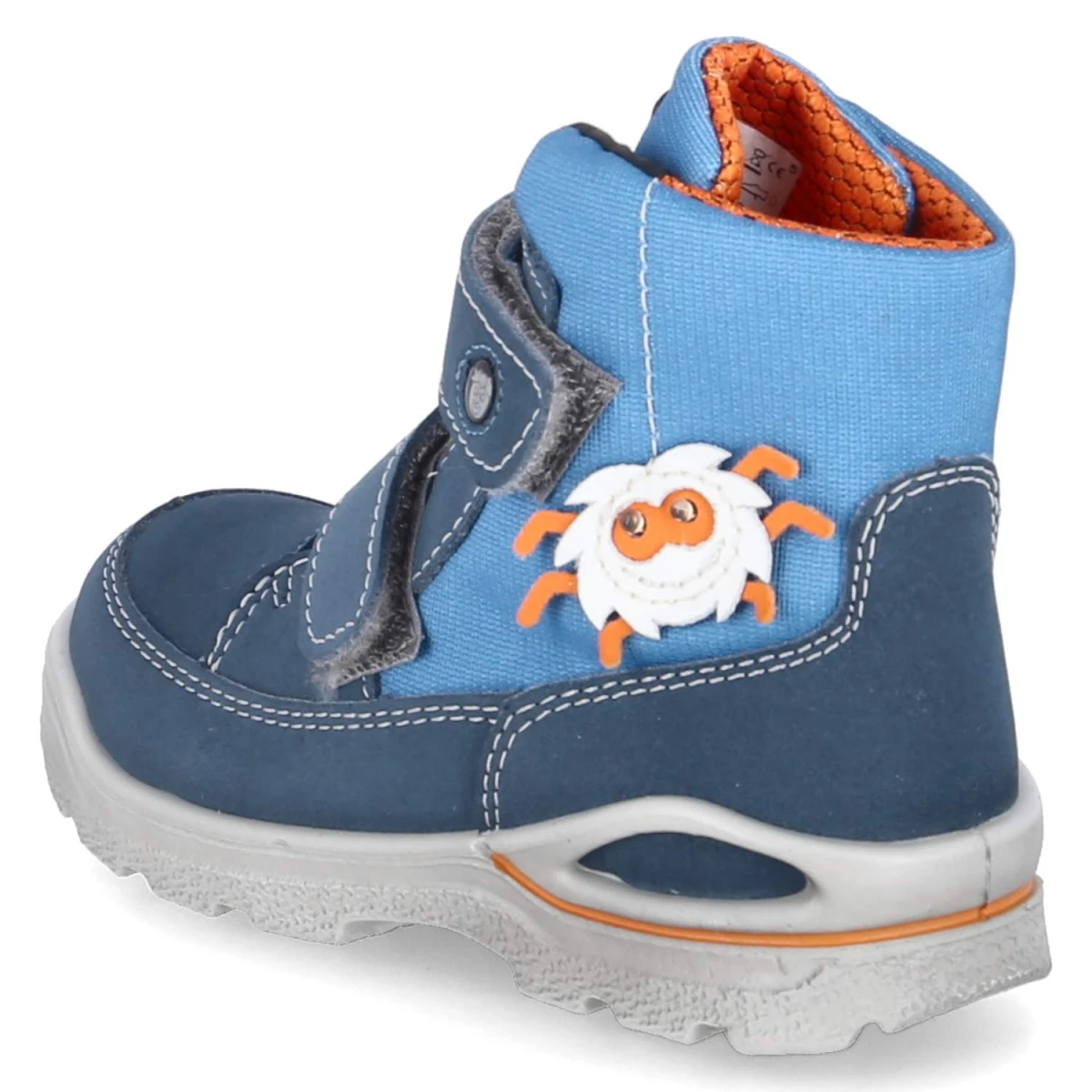 Pepino Winterstiefeletten JAN begleiten kleine Abenteurer souverän durch kalte Tage. Das Obermaterial aus Textil und Synthetik wird von einer Sympatex-Membran unterstützt und hält zuverlässig wasserfest, zugleich atmungsaktiv. Innen verwöhnt weiches Lammwollfutter, die Decksohle aus Textil und der gepolsterte Einstieg sorgen für behaglichen Sitz. Zwei praktische Klettriemen erleichtern das An- und Ausziehen und erlauben eine individuelle Weitenregulierung, während die WMS-Schuhweite Weit und die runde Spitze genügend Zehenfreiheit bieten. Ein verstärkter Fußrahmen erhöht die Stabilität, die flexible, rutschhemmende Laufsohle gibt Halt auf winterlichen Wegen. Seitlich begeistert eine Comic-Spinne; ihre LED-Augen blinken bei jedem Schritt und sind nicht schaltbar. Das blaue Design ist vielseitig kombinierbar und fällt in der Größe normal aus. Modetipp: Mit Thermojeans, marinefarbenem Parka und Strickschal entsteht ein lässiger Winterlook.