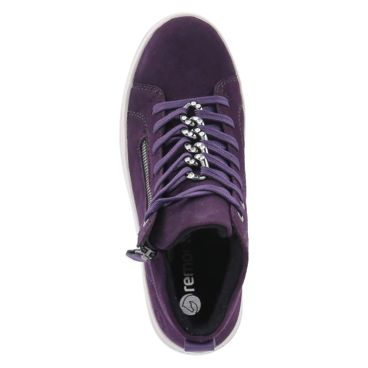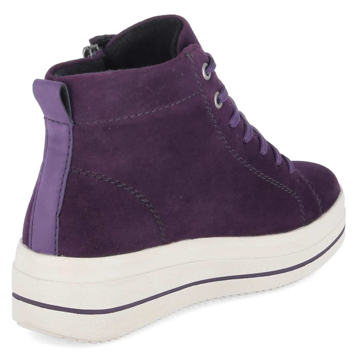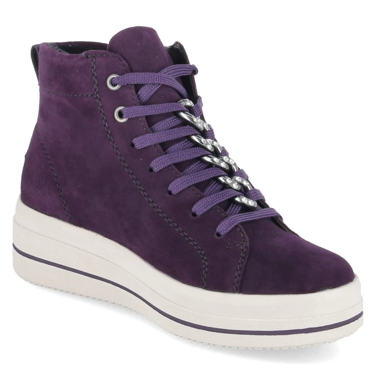 Die Schnürstiefeletten LIZ HURLEY von Remonte verbinden sportliches Design mit femininer Raffinesse. Lila Rauleder mit samtiger Oberfläche setzt ein stilvolles Statement, während ein in die Schnürung verflochtenes Kettenelement mit glitzernden Schmucksteinen funkelnde Akzente liefert. Der runde Leisten, der gepolsterte Einstieg und die gut gepolsterte, textile Wechseldecksohle mit Wechselfußbett sichern hohen Tragekomfort. Warmfutter mit leichtem Fleece sorgt für angenehme Wärme, die flexible, rutschhemmende Copsohle garantiert Stabilität im Alltag. Praktisch: Neben der variablen Schnürung erleichtert ein zusätzlicher Reißverschluss das An- und Ausziehen, die verstärkte Ferse mit Anziehlasche gibt Halt. Fällt größengetreu aus. Modetipp: Ton-in-Ton zu Strickkleid und blickdichter Strumpfhose stylen, dazu ein Oversize-Mantel in Graunuancen.