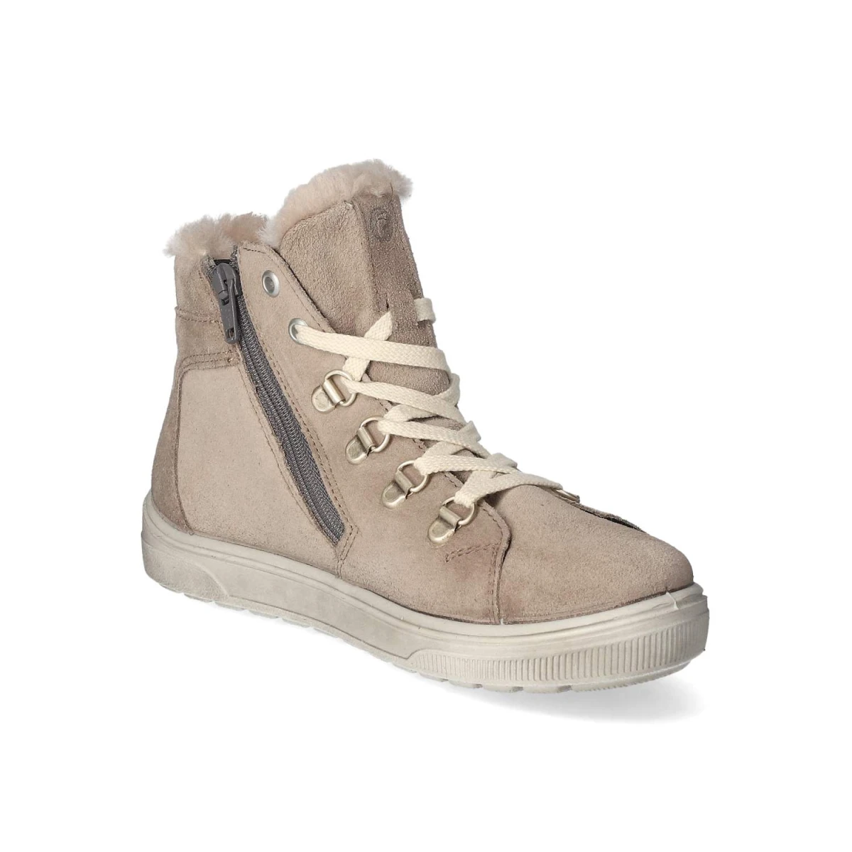 Die Schnürstiefeletten MAREN von Ricosta vereinen funktionalen Wetterschutz und kindgerechten Komfort in einem zeitlosen Taupe. Das weiche Rauleder umschließt den Fuß, während Ricosta-TEX die kleinen Schritte zuverlässig wasserfest und zugleich atmungsaktiv begleitet. Innen sorgt warmes Futter mit kuscheligem Fellbesatz am Schaft für Behaglichkeit, die textile Wechseldecksohle und das komfortable Wechselfußbett bringen zusätzliche Dämpfung und lassen sich zum Lüften einfach herausnehmen. Dank bequemen Reißverschlusseinstieg gelingt das An- und Ausziehen schnell, die Schnürung optimiert den Sitz. Die rutschhemmende, flexible Profilsohle gibt sicheren Halt, die runde Spitze schafft Zehenfreiheit. Fällt normal aus. Modetipp: Zu Cordhose, Parka in Erdtönen und groben Stricksocken entsteht ein lässiger Winterlook.