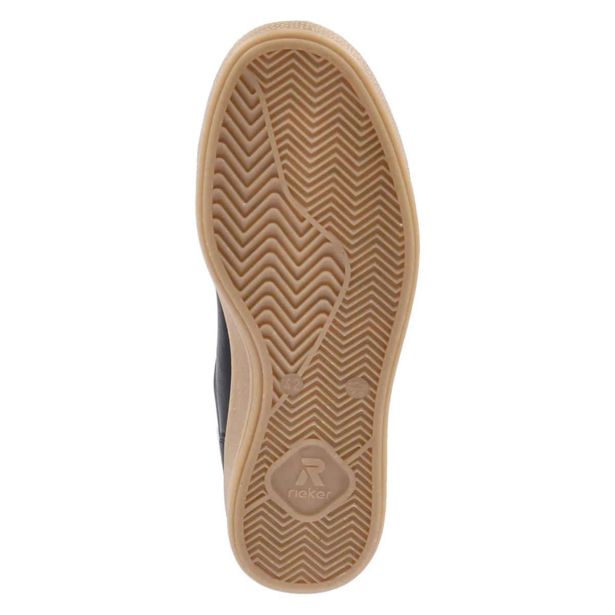 Dieser Rieker Low Sneaker verbindet klare Linien mit funktionaler Ausstattung und überzeugt in zeitlosem Schwarz mit feinen weißen Akzenten. Glattes Echtleder verleiht dem Obermaterial eine wertige Haptik, während die runde Schuhspitze und die klassische Schnürung eine sportive, vielseitige Silhouette formen. Ein komfortables Wechselfußbett auf textiler Decksohle sorgt für angenehmes Fußklima und ermöglicht eine individuelle Anpassung, die auch an langen Tagen Tragefreude bringt. Der Einstieg ist leicht gepolstert, Zehen- und Fersenbereich sind dezent verstärkt, was Halt gibt, ohne aufzutragen. Die flexible Cupsohle bietet rutschhemmenden Grip im Alltag und macht jede Bewegung geschmeidig mit. Größenhinweis: fällt normal aus. Modetipp: Besonders stimmig zu schmalen Chinos oder dunklem Denim, ergänzt von einem cleanen Sweatshirt oder einer leichten Lederjacke für einen urbanen Look.