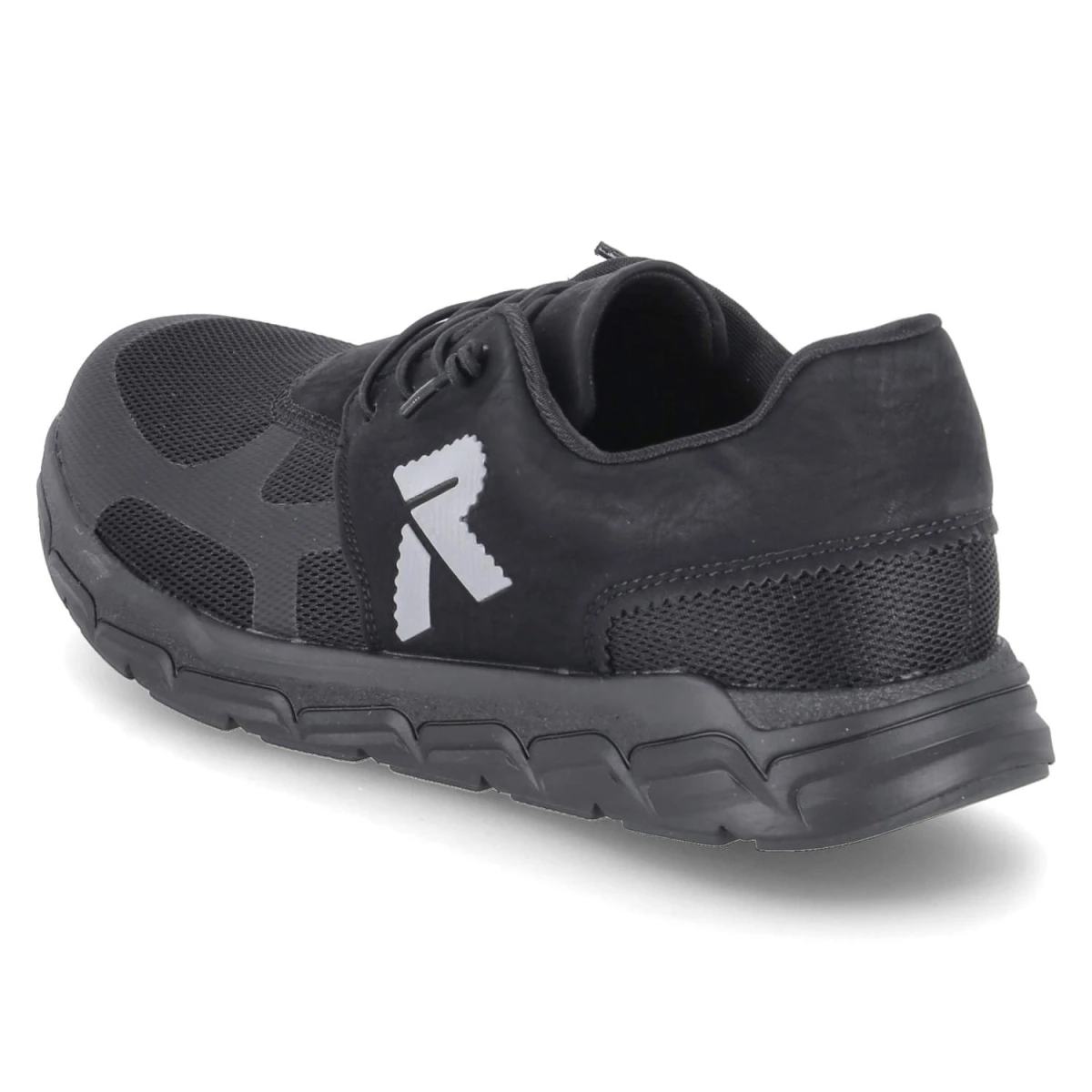 Der Low Sneaker von Rieker in Schwarz verbindet lässigen Look mit verlässlichem Tragekomfort. Der luftige Material-Mix aus Textil und Synthetik sorgt für angenehme Atmungsaktivität, während der rund geschnittene Vorderfuß natürlichen Platz bietet. Ein komfortables Wechselfußbett mit textiler Decksohle dämpft den Schritt und lässt sich bei Bedarf gegen eigene Einlagen tauschen. Praktisch erweist sich die bequeme Elastikschnürung, die das An- und Ausziehen beschleunigt und dennoch sicheren Halt bietet. Reflektierende Details inklusive gelabeltem Seitenreflektor erhöhen die Sichtbarkeit in der Dämmerung. Verstärkte Zehen- und Fersenpartien sowie ein gepolsterter Einstieg erhöhen die Langlebigkeit und Bequemlichkeit. Die flexible, rutschhemmende Laufsohle gibt Stabilität auf urbanen Wegen, das Modell fällt größengetreu aus. Modetipp: Mit Slim-Jeans, schwarzer Overshirt-Jacke und Ton-in-Ton-Sneakersocken gelingt ein cleaner City-Look.