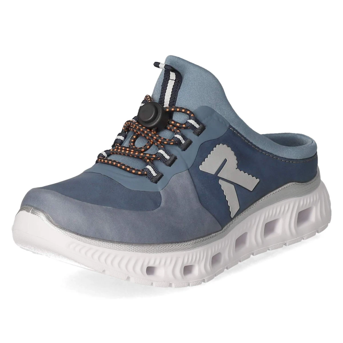 Die blauen Pantoletten von Rieker vereinen sportliches Design mit wohltuendem Komfort. Das Obermaterial aus einem leichten Textil-Synthetik-Mix liegt angenehm am Fuß, während die runde Schuhspitze einen entspannten Auftritt ermöglicht. Besonderes Highlight ist die beste Memory-Foam-Fußbettung, die sich sanft an die Fußform anpasst und bei jedem Schritt dämpft. Ein Elastikband mit Schnellverschluss sorgt für unkompliziertes Hineinschlüpfen und einen sicheren Halt. Reflektierende Details setzen moderne Akzente und erhöhen die Sichtbarkeit in der Dämmerung. Die flexible, rutschhemmende Laufsohle gewährleistet Stabilität auf verschiedenen Untergründen. Mit Textildecksohle und normal ausfallender Passform ist unkomplizierter Komfort garantiert. Modetipp: Zu luftigen Leinenhosen und einem gestreiften Shirt entsteht ein frischer City-Look, den ein Korbshopper stilvoll abrundet.
