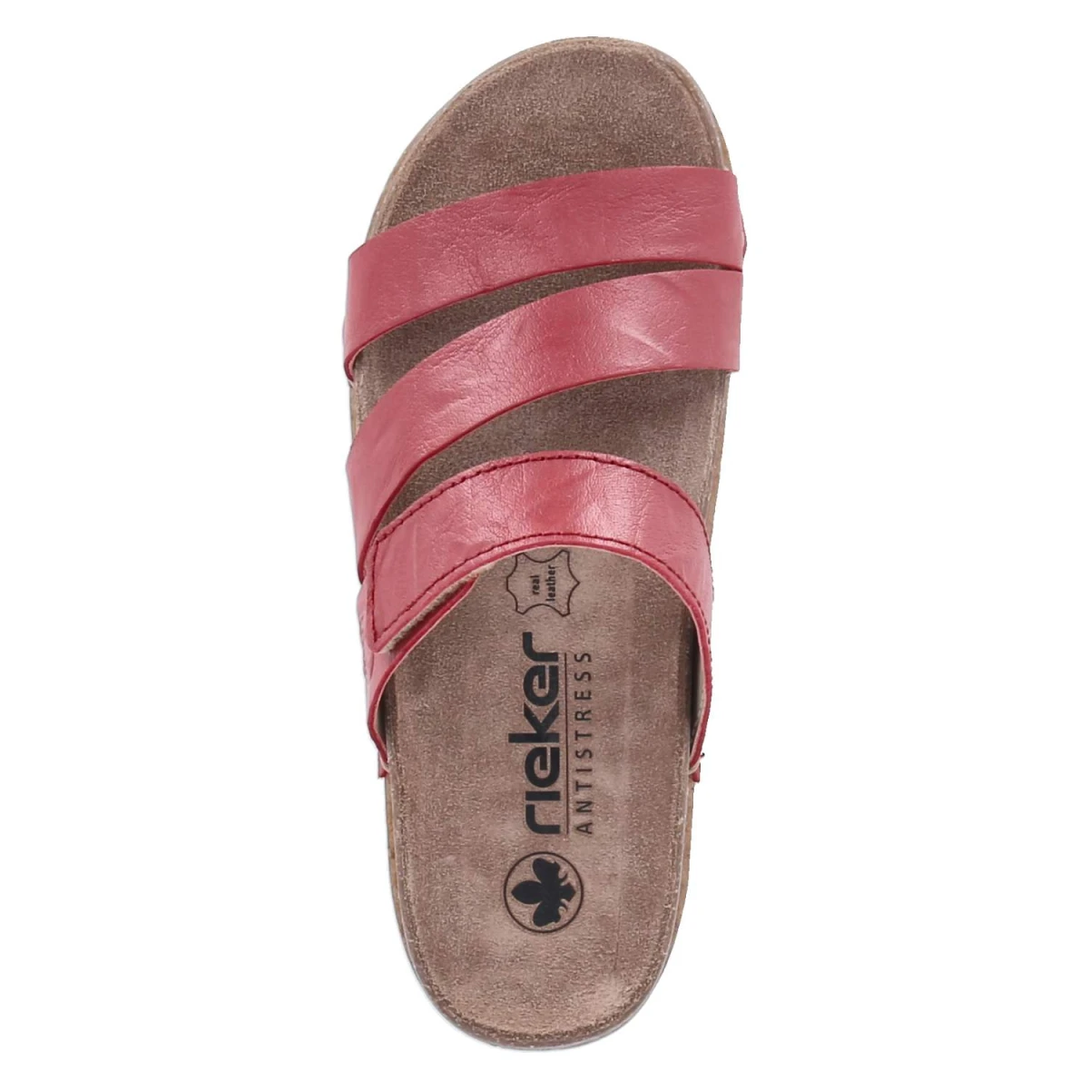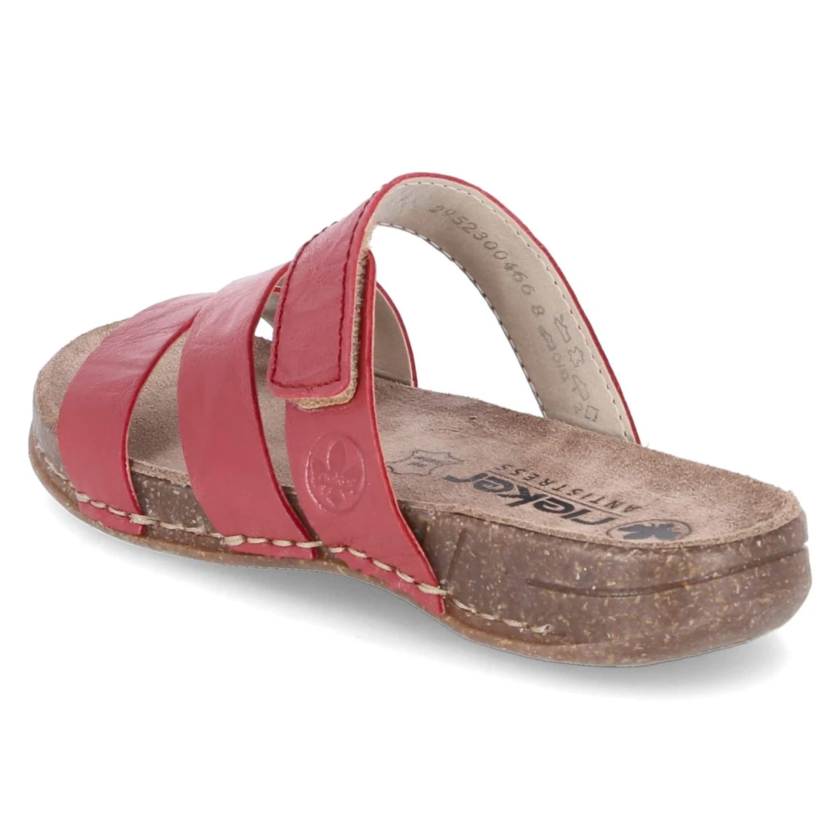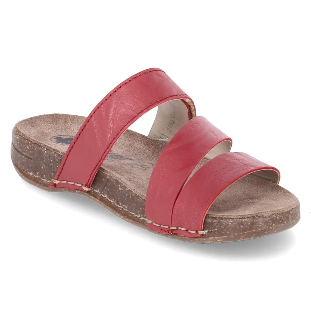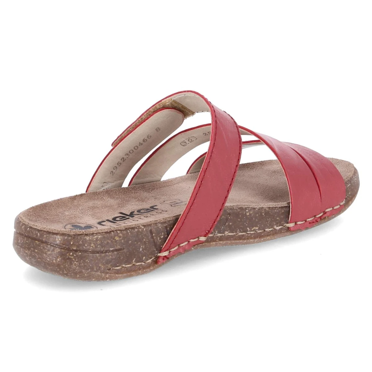 Rote Pantoletten von Rieker vereinen sommerliche Leichtigkeit mit wertiger Verarbeitung. Das Obermaterial aus Glattleder zeigt sich strapazierfähig und formschön, während langlebiges Echtleder den Anspruch an Qualität unterstreicht. Eine offene Schuhspitze sorgt für Luftigkeit, die flexible, griffige Laufsohle gibt verlässlichen Halt auf verschiedenen Untergründen. Für anhaltenden Komfort steht das vorgeformte, gepolsterte Lederfußbett, das den Fuß angenehm unterstützt. Der bequeme Klettverschluss erlaubt eine individuelle Weitenregulierung und macht das An- und Ausziehen unkompliziert. Die Passform fällt normal aus und richtet sich an Damen, die ein unkompliziertes, alltagstaugliches Sommermodell bevorzugen. Modetipp: Rot wirkt besonders edel zu hellen Leinenstoffen und sanften Naturtönen, etwa mit einer cremefarbenen Culotte und einer lockeren Bluse aus Viskose, dazu dezenter Goldschmuck für einen modernen, entspannten City-Look.
