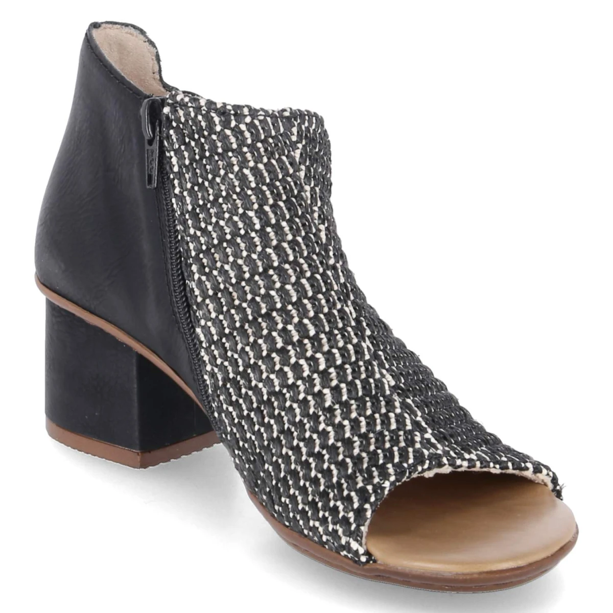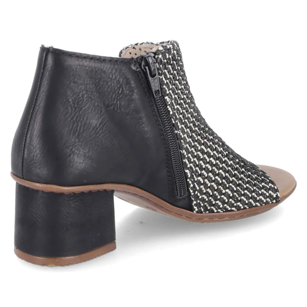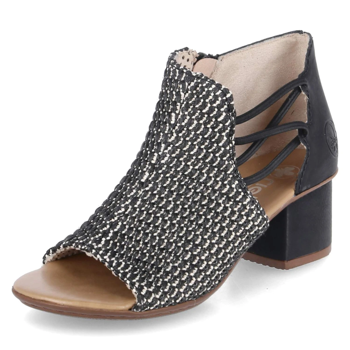 Diese Rieker Sandaletten in klassischem Schwarz verbinden sommerliche Leichtigkeit mit zuverlässigem Komfort. Der geflochtene Schaft setzt eine dezente Struktur, während der 5,5 cm hohe Blockabsatz eine stabile, feminine Silhouette formt. Das offene Design lässt Luft an den Fuß, das gepolsterte Fußbett federt jeden Schritt ab. Ober- und Decksohle aus Synthetik punkten mit pflegeleichter Oberfläche und behalten auch nach vielen Einsätzen ihren gepflegten Look. Ein Reißverschluss erleichtert den Einstieg, seitliche Elastikbänder optimieren den Sitz. Die Passform fällt normal aus und macht die Größenwahl unkompliziert. Ideal für Stadtbummel, Büro oder Abendprogramm, wenn Eleganz gefragt ist und Bequemlichkeit nicht fehlen darf. Modetipp: Zu einer schwarzen Culotte und einem leichten Blusen-Top entsteht ein monochromer Sommerlook, der mit goldenen Creolen und einer Mini-Bag modern akzentuiert wird.