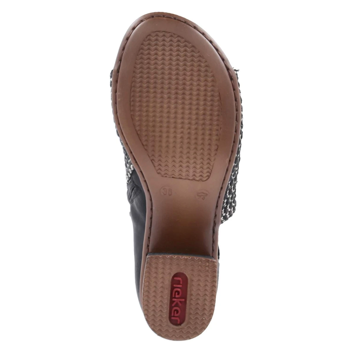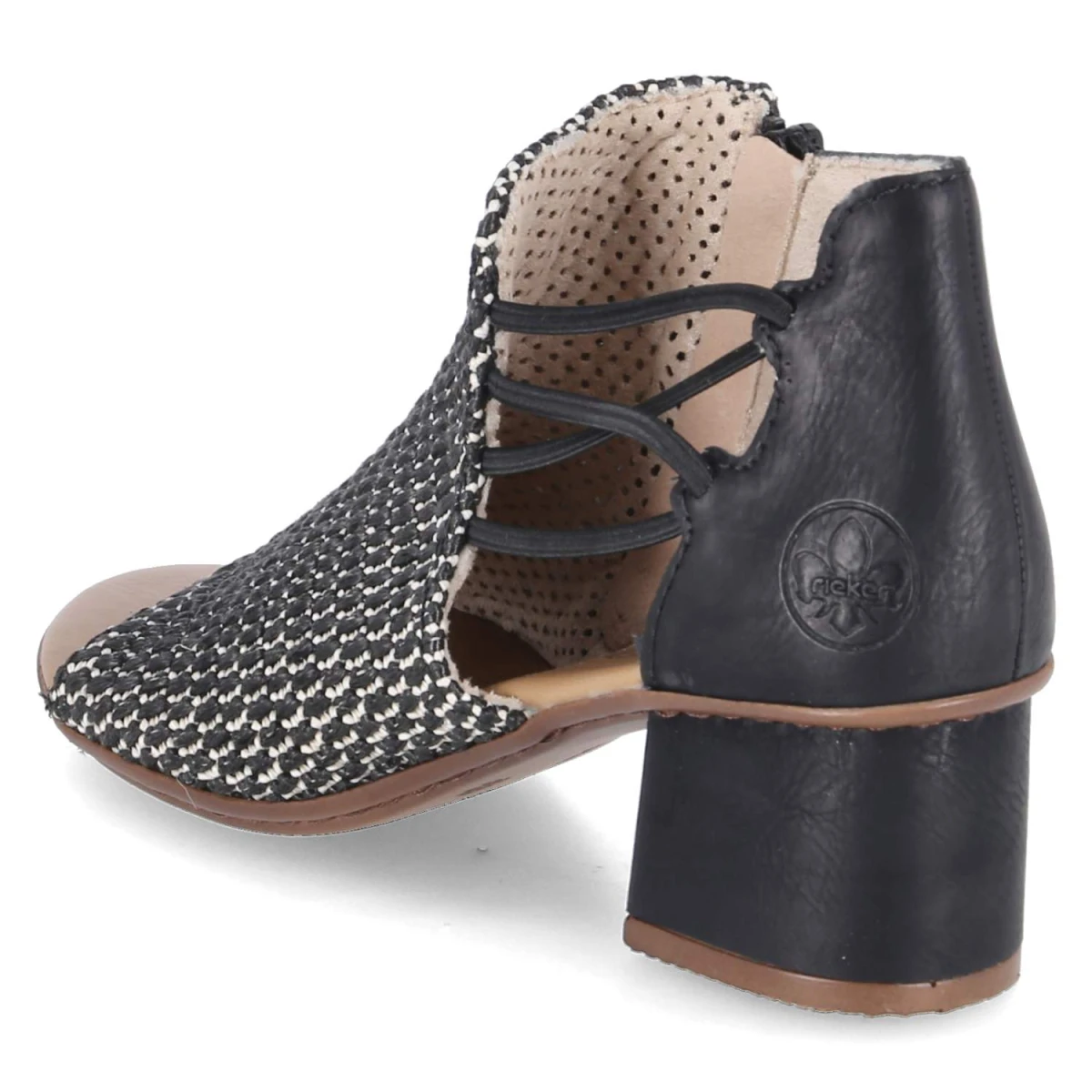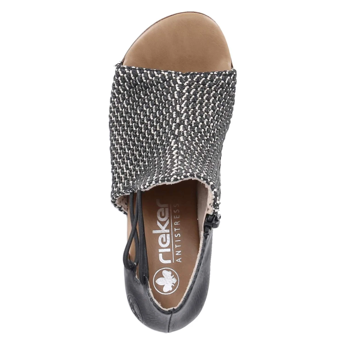 Diese Rieker Sandaletten in klassischem Schwarz verbinden sommerliche Leichtigkeit mit zuverlässigem Komfort. Der geflochtene Schaft setzt eine dezente Struktur, während der 5,5 cm hohe Blockabsatz eine stabile, feminine Silhouette formt. Das offene Design lässt Luft an den Fuß, das gepolsterte Fußbett federt jeden Schritt ab. Ober- und Decksohle aus Synthetik punkten mit pflegeleichter Oberfläche und behalten auch nach vielen Einsätzen ihren gepflegten Look. Ein Reißverschluss erleichtert den Einstieg, seitliche Elastikbänder optimieren den Sitz. Die Passform fällt normal aus und macht die Größenwahl unkompliziert. Ideal für Stadtbummel, Büro oder Abendprogramm, wenn Eleganz gefragt ist und Bequemlichkeit nicht fehlen darf. Modetipp: Zu einer schwarzen Culotte und einem leichten Blusen-Top entsteht ein monochromer Sommerlook, der mit goldenen Creolen und einer Mini-Bag modern akzentuiert wird.
