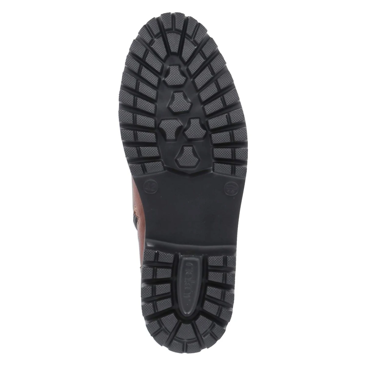 Dieser Herren-Winterboot von Rieker kombiniert funktionale Stärke mit smartem Design. Das robuste Obermaterial aus Synthetik schützt zusammen mit der wasserabweisenden, in Alltagssituationen wasserfesten Verarbeitung vor Schnee und Matsch, während atmungsaktive Einsätze für ein ausgeglichenes Fußklima sorgen. Warmfutter und textile Decksohle bieten wohltuende Isolation, der gepolsterte Einstieg und der verstärkte Fersenbereich erhöhen den Halt. Ein 4 cm hoher Blockabsatz und die robuste, vernähte Profilsohle geben Stabilität auf glattem Untergrund, die runde Spitze sorgt für Bewegungsfreiheit. Schnürsenkel und zusätzlicher Reißverschluss ermöglichen schnelles An- und Ausziehen. Der Passformhinweis fällt normal aus. Dezente Ziernähte und eine praktische Anziehlasche runden den Look ab. Modetipp: Mit dunkler Raw Denim, Wollsocken und Parka entsteht ein lässiger Winter-Look.