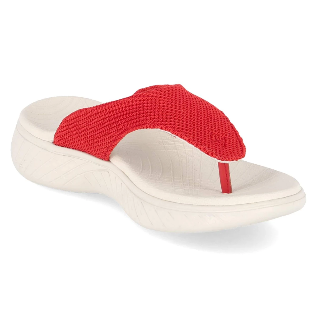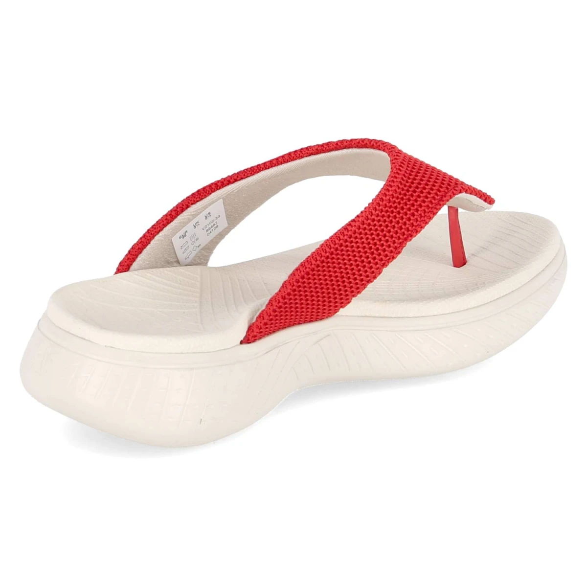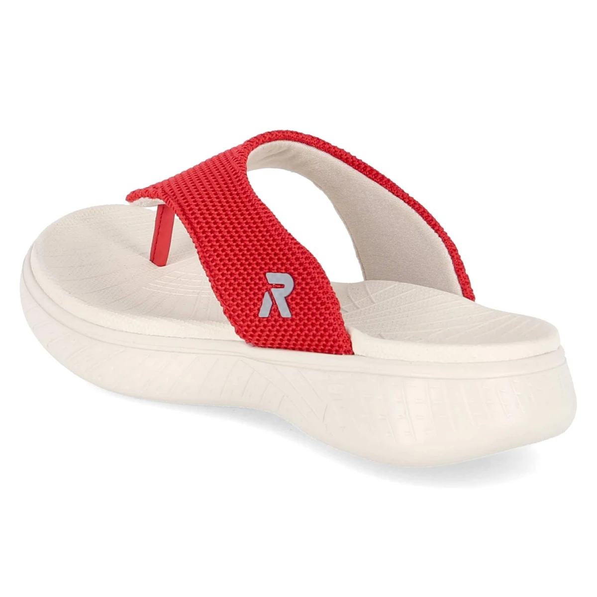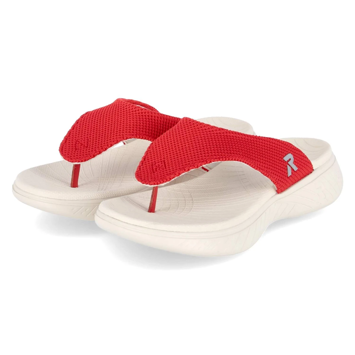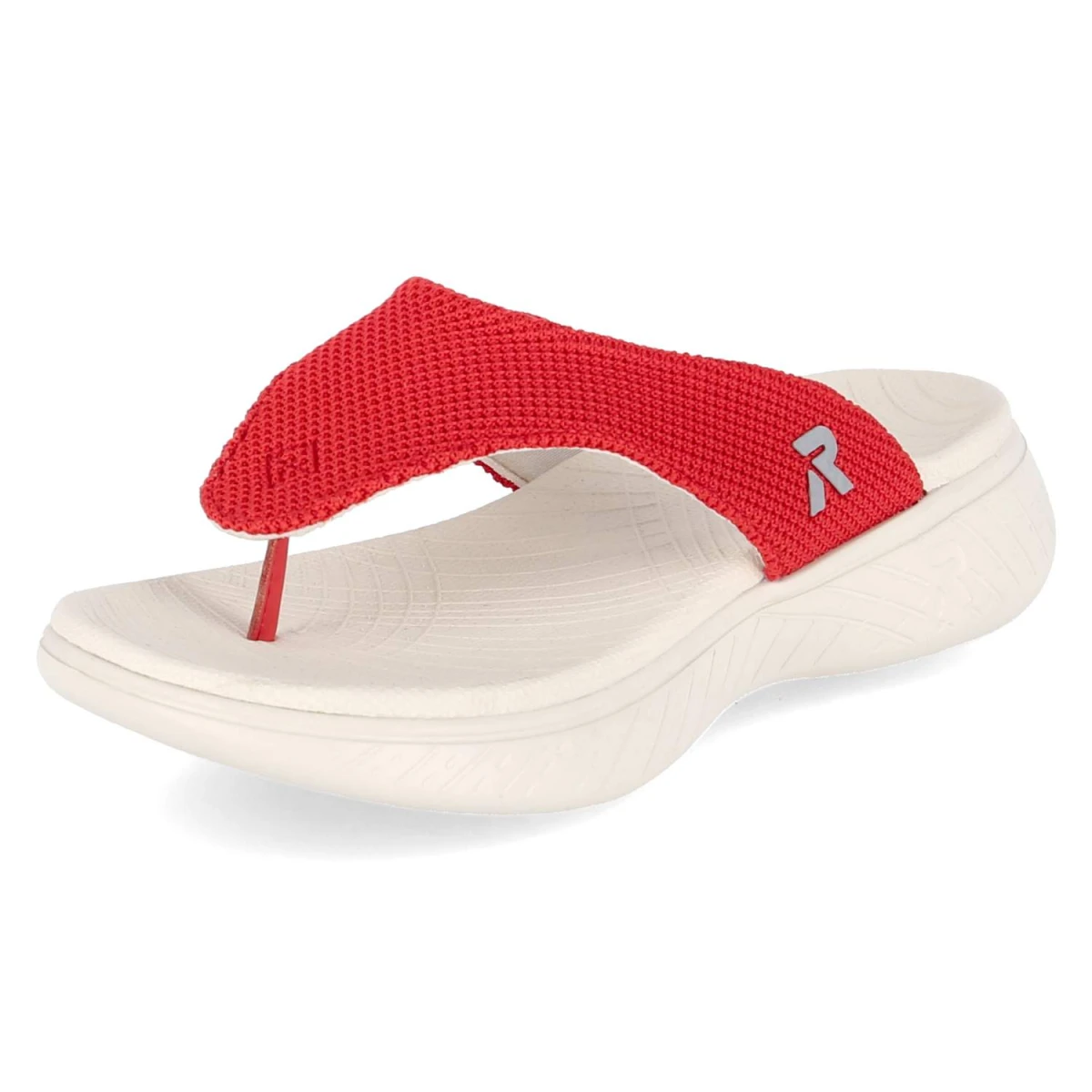 Als sommerlicher Zehentrenner verbindet dieses Rieker-Modell sportliche Leichtigkeit mit komfortorientierten Details. Das leichte Textilobermaterial in markanter Strick-Optik schmiegt sich angenehm an den Fuß, während die weiche Decksohle aus Synthetik bei jedem Schritt dämpft und für entspanntes Fußwohl sorgt. Die offene Schuhspitze und das Design ohne Verschluss ermöglichen unkompliziertes Hineinschlüpfen, ideal für spontane Wege in der Stadt oder an der Promenade. Ein reflektierendes, seitlich platziertes Logo setzt einen dynamischen Akzent und erhöht die Sichtbarkeit in der Dämmerung. Die leuchtende Rotnuance unterstreicht die sportliche Optik und macht den Look zum Statement für aktive Sommertage. Der Größenhinweis fällt normal aus und bietet verlässliche Passform für Damen. Dank des geringen Gewichts bleibt die Bewegung stets unbeschwert. Modetipp: Besonders modern wirkt der Zehentrenner zu weißen Wide-Leg-Jeans und einem gerippten Tanktop, ergänzt durch eine leichte Oversize-Leinenbluse.