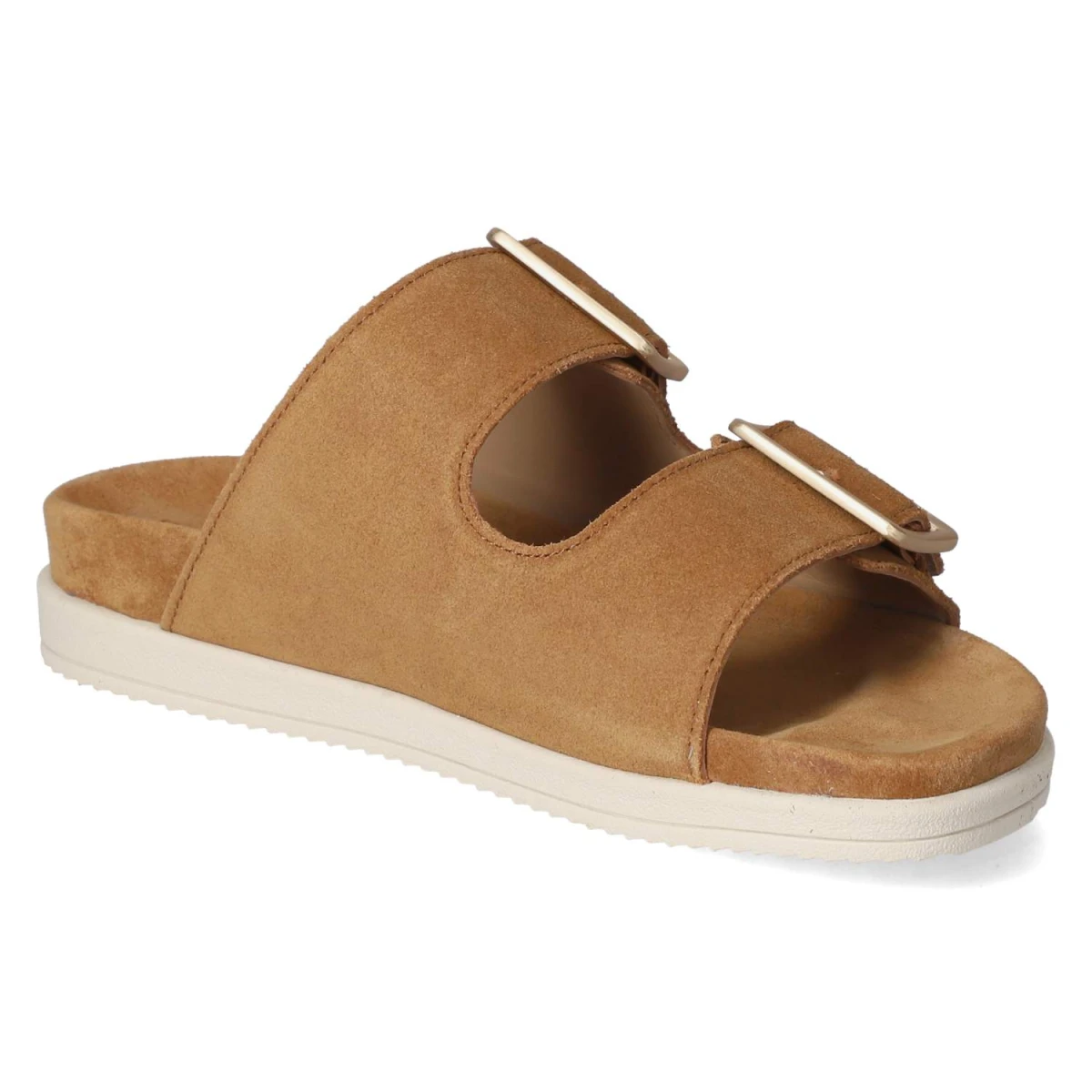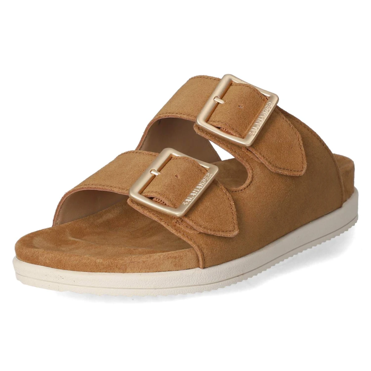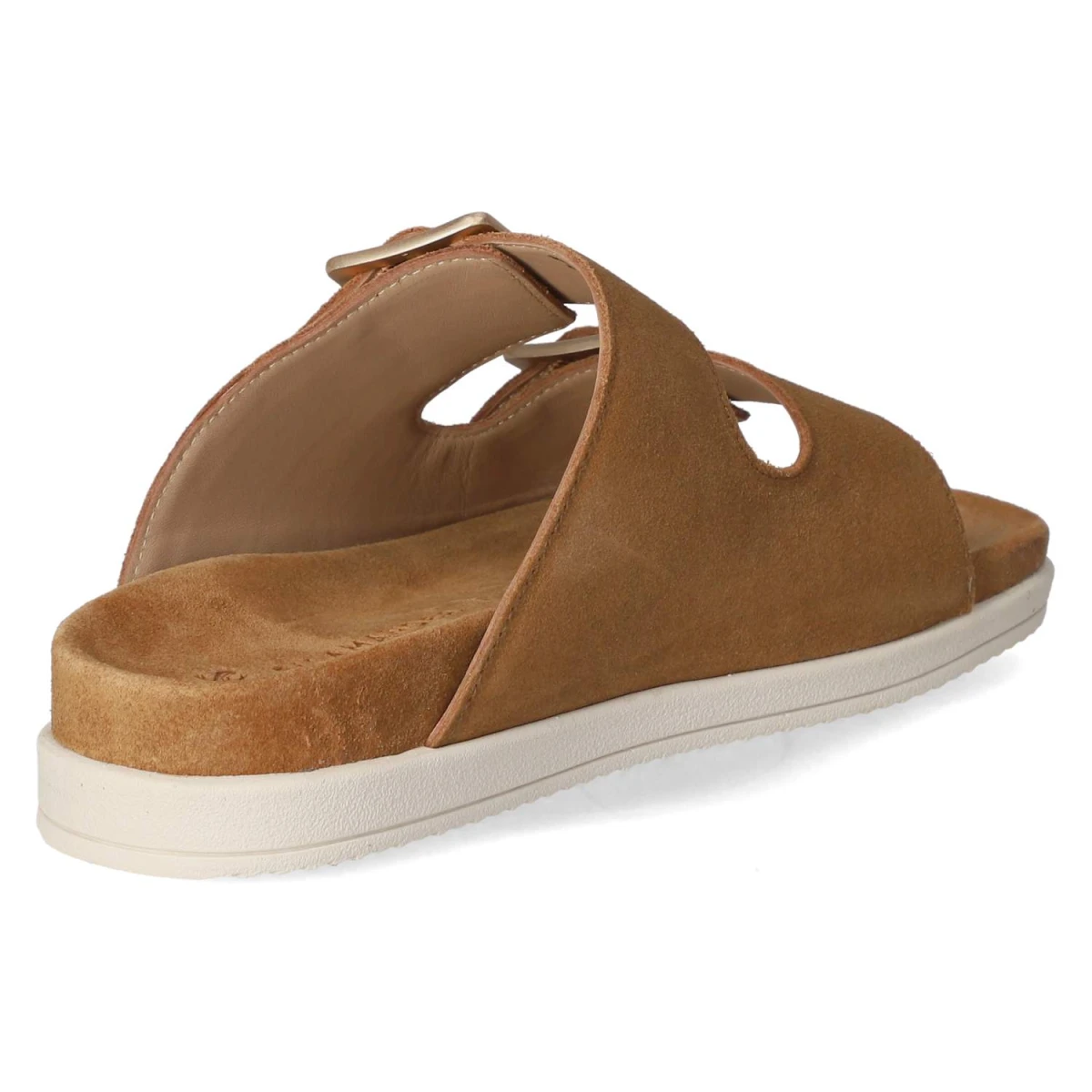 Die Pantoletten von Salamander setzen auf klare Formensprache und wertige Materialien. Das Obermaterial aus weichem Rauleder in warmem Braun schmiegt sich angenehm an den Fuß, während die lederne Decksohle mit vorgeformter, gepolsterter Unterstützung für entspanntes Gehen sorgt. Sichere Schnallen erlauben eine individuelle Weitenanpassung und halten auch bei längeren Strecken zuverlässig. Die offene Schuhspitze sorgt für Luftigkeit, die flexible, rutschfeste Laufsohle gibt Stabilität auf verschiedensten Untergründen. Dank normal ausfallender Passform lässt sich die Größe gewohnt wählen. Robustes Echtleder verleiht Langlebigkeit und eine wertige Optik - ideal für viele Saisons. Modetipp: Zu fließenden Leinenkleidern und einer Korbtasche kombinieren, dazu zarte Goldakzente für einen sommerlich-eleganten Look.