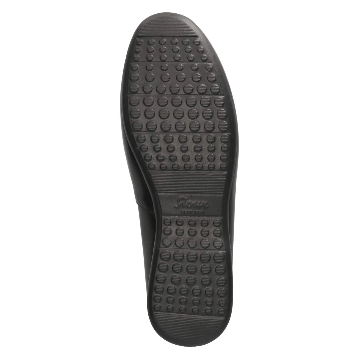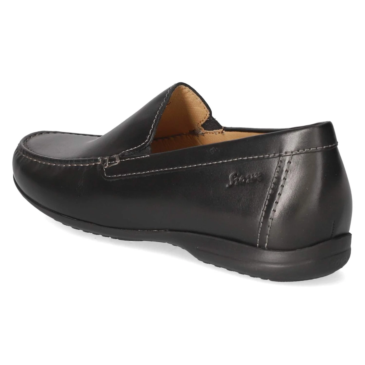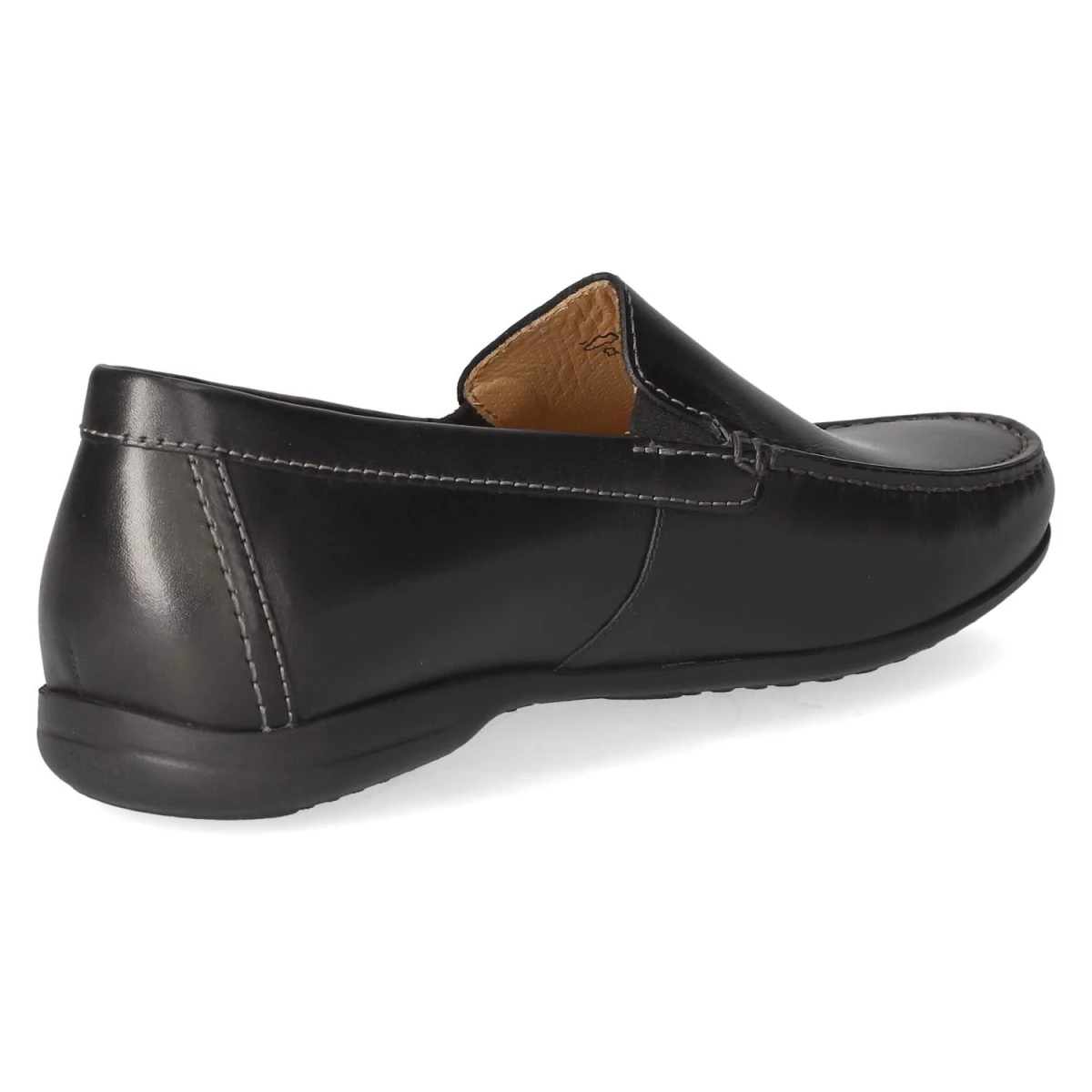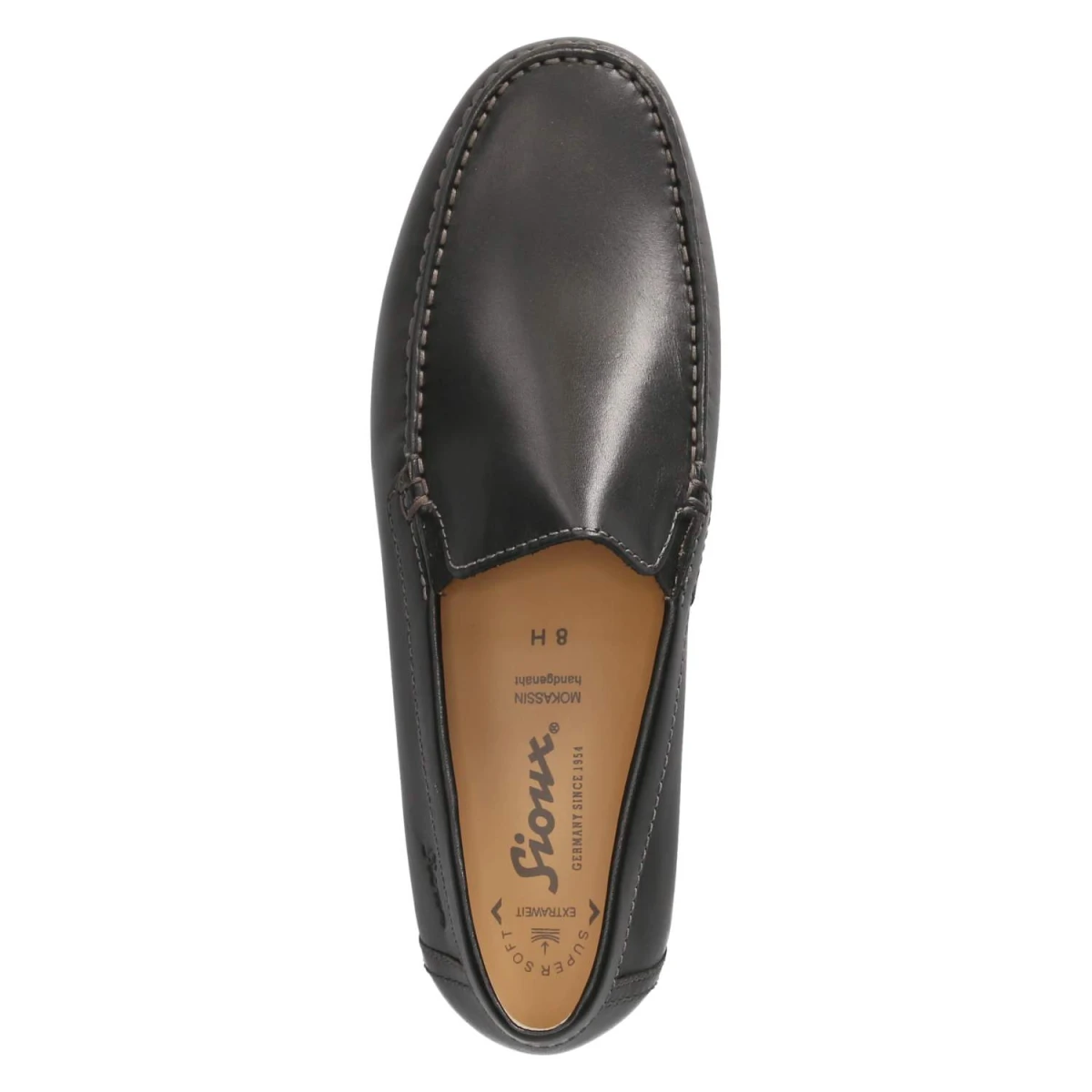 Der Mokassin GION von Sioux präsentiert sich als zeitloser Herrenschuh in klassischem Schwarz. Aus langlebigem Echtleder mit feinem Glattleder-Obermaterial gefertigt, verbindet er elegantes Design mit hoher Alltagstauglichkeit. Die runde Schuhspitze und die dezente Wulstnaht unterstreichen den kultivierten Look. Zwei kleine Elastikeinsätze erleichtern den Einstieg, der Schlupfschuh kommt ohne Verschluss aus. Innen sorgt eine gepolsterte Lederdecksohle für angenehmen Auftritt; das komfortable Wechselfußbett lässt sich bei Bedarf gegen eigene Einlagen tauschen. Eine verstärkte Fersenpartie stabilisiert, die profilierte Laufsohle mit rutschhemmenden Eigenschaften bietet Halt im Alltag und auf glatten Böden. Die Passform fällt normal aus und eignet sich für erwachsene Träger, die ein elegantes Design mit praktischen Details schätzen. Modetipp: Mit schmaler Chino, weißem Hemd und leichtem Sakko entsteht ein gepflegter Business-Casual-Look; ein schwarzer Ledergürtel setzt den Schuh zusätzlich in Szene.