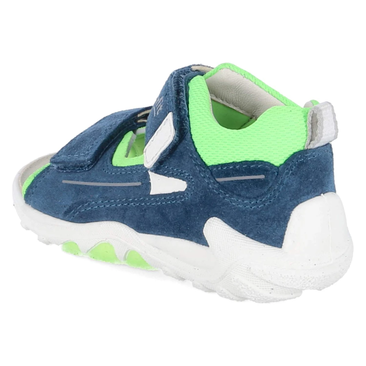 Die Miniletten FLOW von Superfit bringen Kleinkindern sicheren Komfort in frischem Blau. Der robuste Material-Mix aus Leder und Textil hält tägliche Abenteuer souverän aus, während die offene Schuhspitze für ein angenehm luftiges Tragegefühl sorgt. Zwei praktische Klettriemen erlauben ein zügiges An- und Ausziehen und lassen sich individuell an den kleinen Fuß anpassen. Mit WMS-Schuhweite Mittel und regulärer Passform sitzt der Schuh zuverlässig. Die hautfreundliche Lederdecksohle schmiegt sich weich an, der gepolsterte Einstieg vermeidet Druckstellen und der verstärkte Fersenbereich stabilisiert jeden Schritt. Für Trittsicherheit sorgt die flexible, rutschhemmende Laufsohle, die Bewegung spielerisch mitgeht. Modetipp: Zu Denim-Shorts und einem hellen Jerseyshirt kommt das Blau besonders gut zur Geltung; farbige Söckchen setzen einen fröhlichen Akzent an kühleren Tagen.