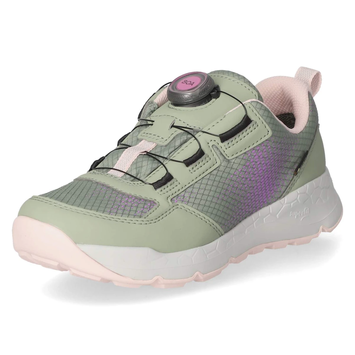 Der Outdoorschuh FREE RIDE von Superfit begleitet kleine Entdecker zuverlässig durch wechselhaftes Wetter. Das robuste Obermaterial aus Textil und Synthetik wird von einer Gore‑Tex Membran geschützt, die dauerhaft wasserfest und atmungsaktiv ist. Ein flexibler Schnellverschluss ermöglicht rasches Fixieren, während Anziehlasche und gepolsterter Einstieg das Hineinschlüpfen erleichtern. Der verstärkte Zehen- und Fersenbereich bietet zusätzlichen Schutz, die rutschhemmende, flexible Laufsohle sorgt für Trittsicherheit auf nassem Untergrund. Innen punktet ein gepolstertes, herausnehmbares Wechselfußbett mit angenehmem Komfort. In frischem Grün mit lilafarbenen Punkten und runder Spitze fügt sich der Schuh spielerisch in den Alltag ein. Die Passform fällt normal aus, Weite Mittel. Modetipp: Kombiniert mit Softshelljacke und Funktionshose in Lila- oder Grüntönen entsteht ein harmonischer Outdoor-Look.
