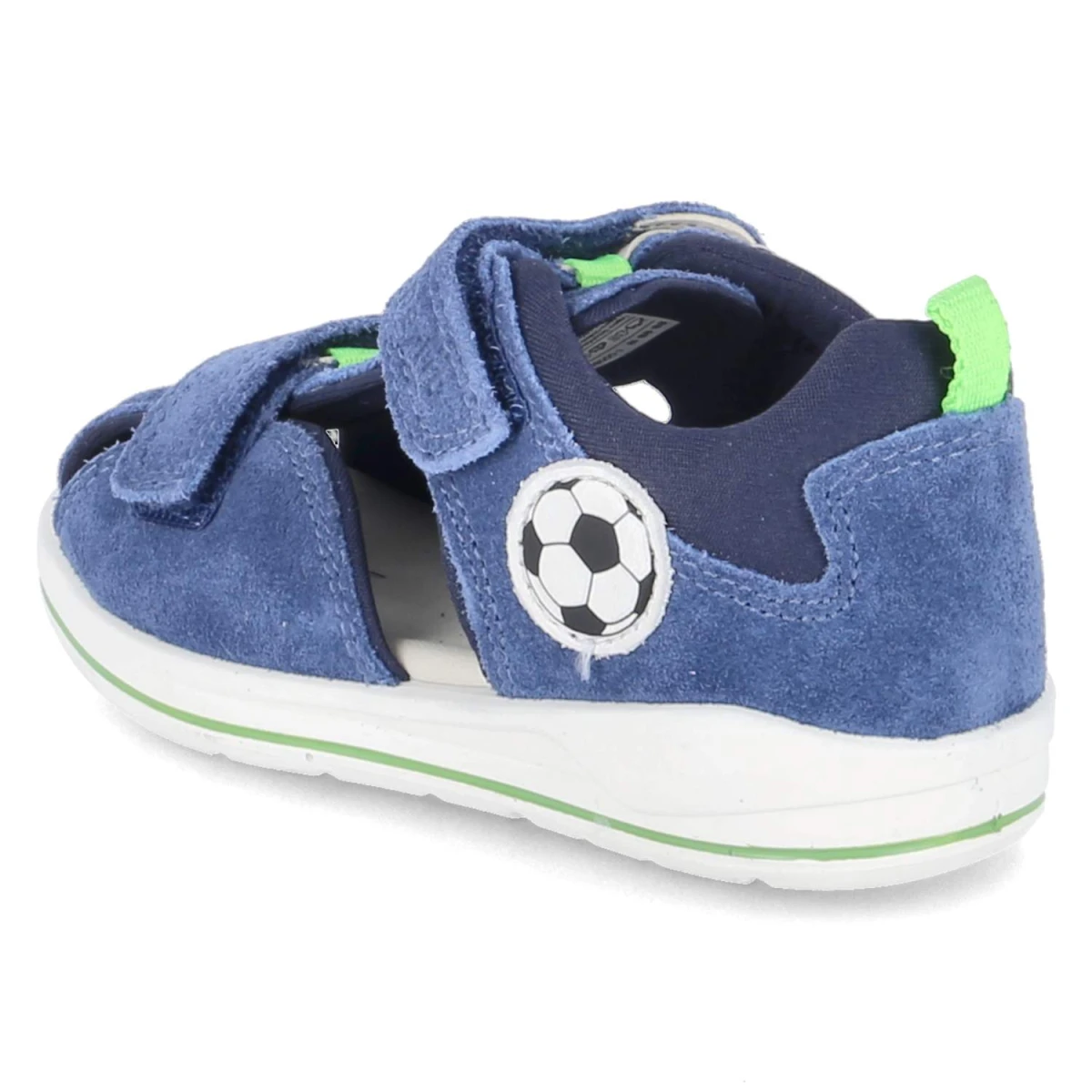 Diese blauen Superfit Sandalen bringen Spielplatz-taugliche Robustheit und weichen Tragekomfort zusammen - ideal für Kleinkinderfüße in Bewegung. Der Material-Mix aus Leder und Textil hält stand, während die hautfreundliche Lederdecksohle für ein angenehmes Fußklima sorgt. Zwei praktische Klettriemen bieten schnellen Halt und lassen sich passgenau regulieren; die WMS-Schuhweite Mittel unterstützt eine kindgerechte Passform. Ein gepolsterter Einstieg und der verstärkte Fersenbereich geben zusätzliche Stabilität, die runde Schuhspitze lässt genügend Zehenfreiheit. Die flexible, rutschhemmende Laufsohle begleitet sichere Schritte auf glatten Fliesen wie auf dem Spielplatz. Ein seitliches Fußballmotiv setzt einen sportlichen Akzent. Fällt normal aus. Modetipp: mit leichten Jeansshorts und einem Ringelshirt kombinieren - dazu farblich abgestimmte Socken für kühle Tage.